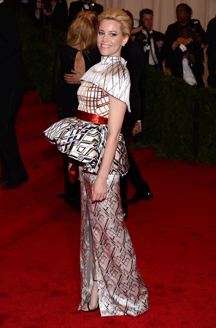 Aaaaand then there’s Mary Katrantzou. Fashion people are all up in Mary Katrantzou and, well, as I said in February during London Fashion Week, I think Mary Katrantzou is fashion Try. This is a lot of fashion Try. Poor Elizabeth Banks got caught up in a designer’s ambition. Her dress doesn’t prioritise the wearer. It offers nothing, not even comfort, for the wearer. This dress’s only purpose is to mash together 500 ideas so as to be noticed at the EXPENSE of the wearer. Who appears to be walking around offering refreshments from a protruding tray around her stomach.