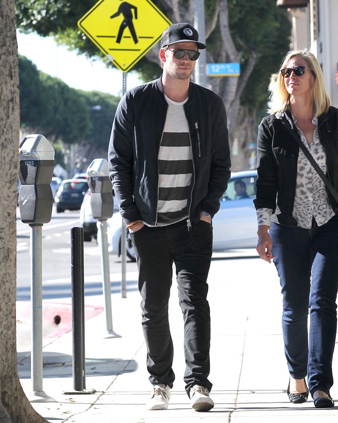 Attached – Hemsworth out with his parents the last couple of days in California.