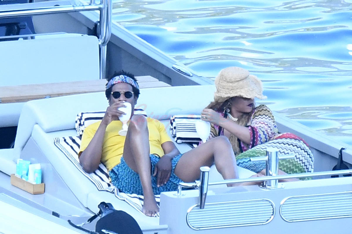 Beyoncé and Jay-Z, along with their children, are currently enjoying some downtime before kicking off the North American leg of OTR2. This weekend, their boat was on the Amalfi Coast. B and J were seen lounging on the deck. Paps got some long range shots of the twins, Rumi and Sir. Can we stop talking now about whether or not she’s pregnant and let her live? It’s summer. She’s enjoying her wine and her cheese and her pasta and she’s still up there on stage every night working that choreo harder than anyone else in the game.