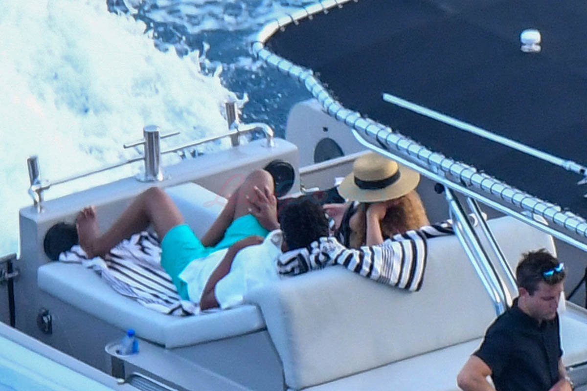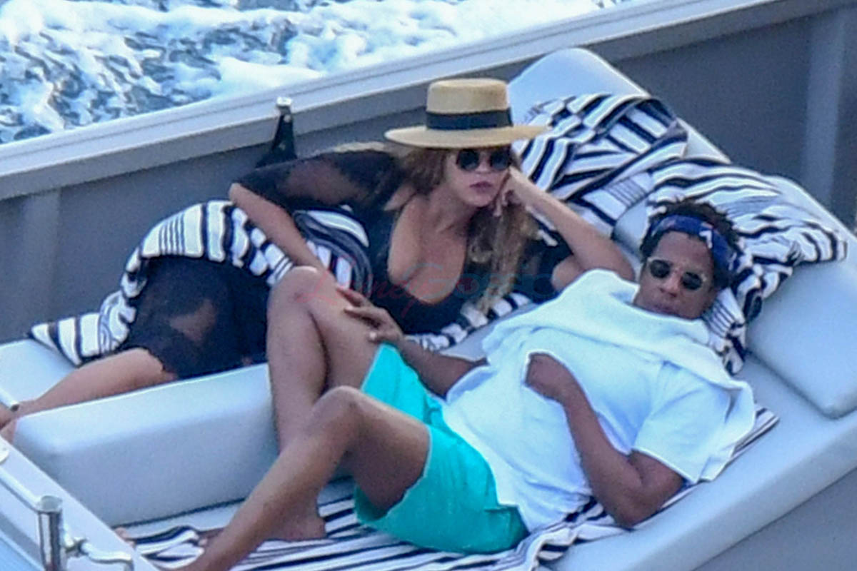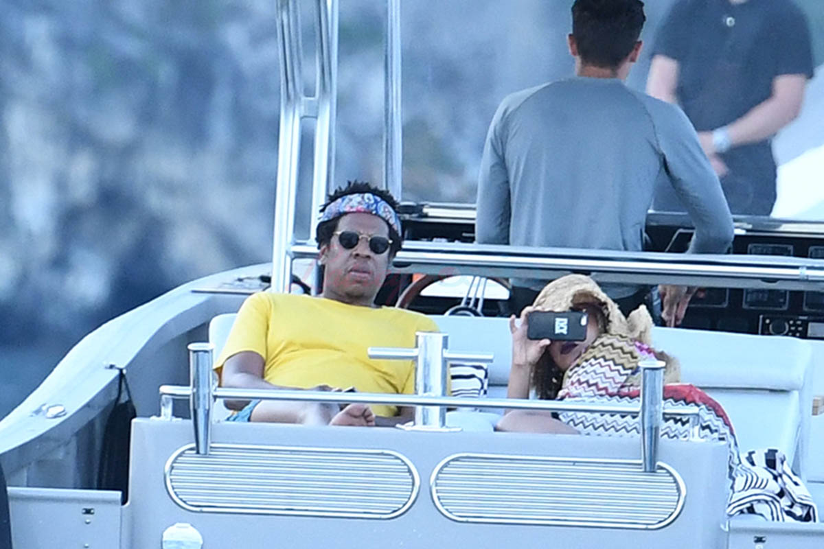 Beyoncé and Jay-Z, along with their children, are currently enjoying some downtime before kicking off the North American leg of OTR2. This weekend, their boat was on the Amalfi Coast. B and J were seen lounging on the deck. Paps got some long range shots of the twins, Rumi and Sir. Can we stop talking now about whether or not she’s pregnant and let her live? It’s summer. She’s enjoying her wine and her cheese and her pasta and she’s still up there on stage every night working that choreo harder than anyone else in the game.