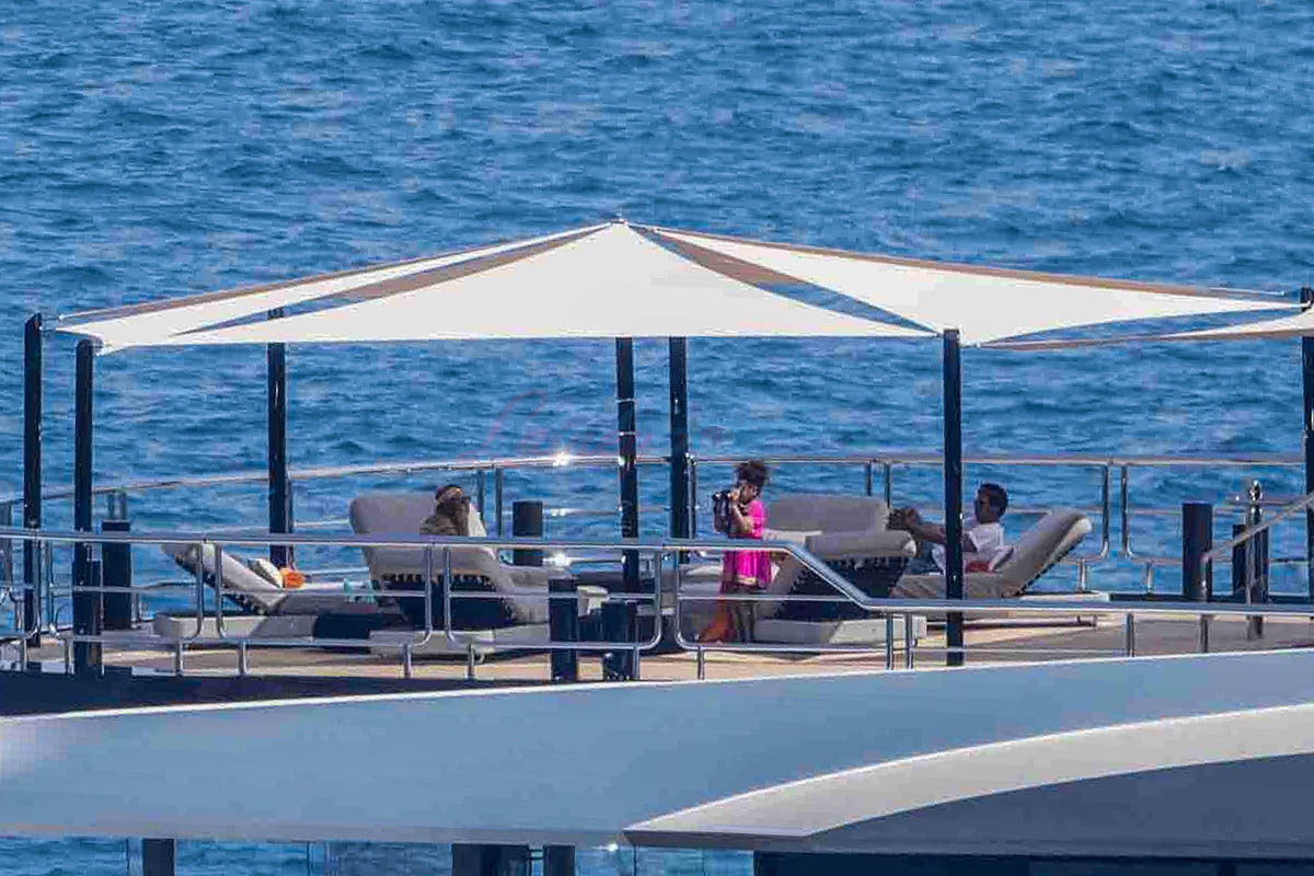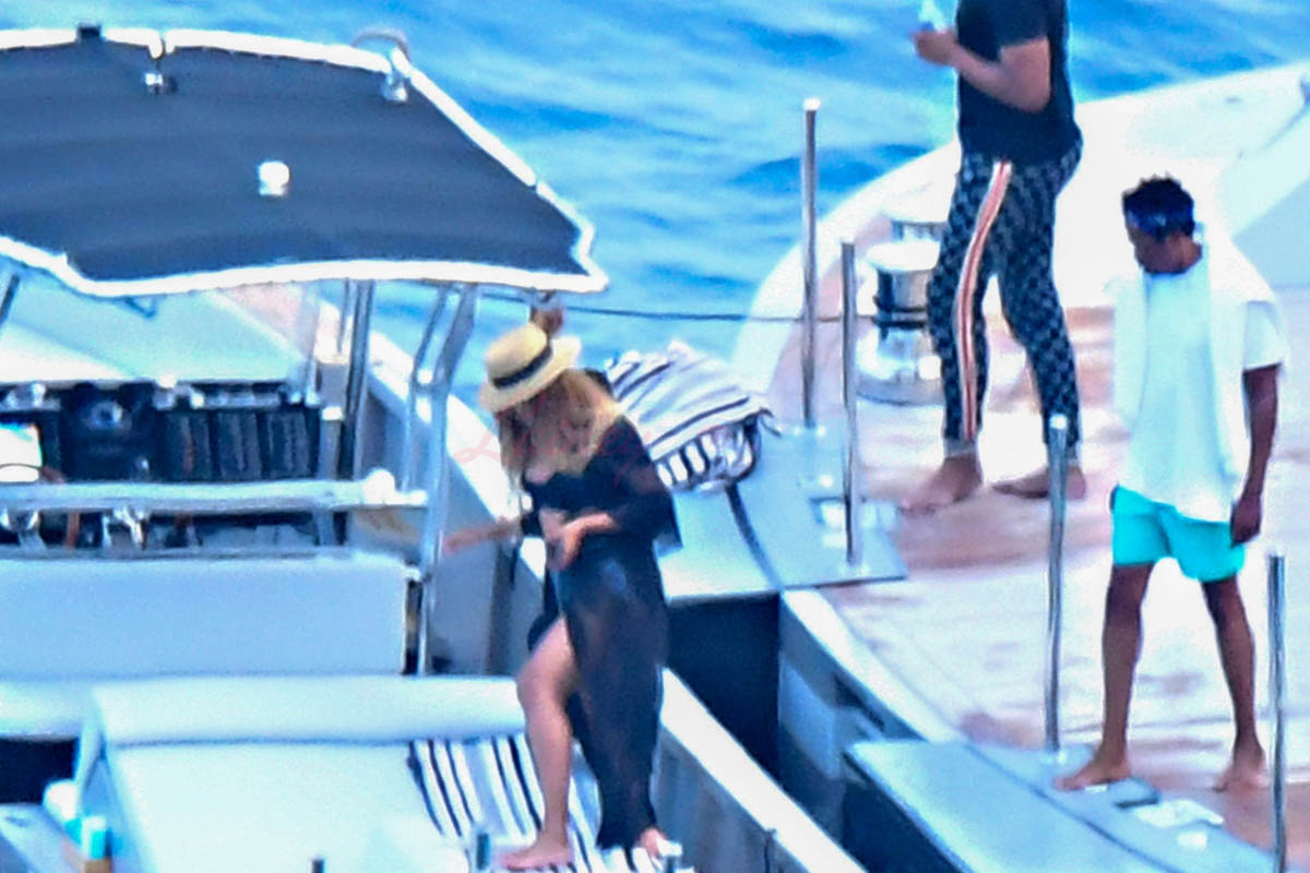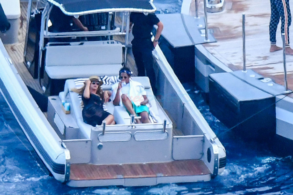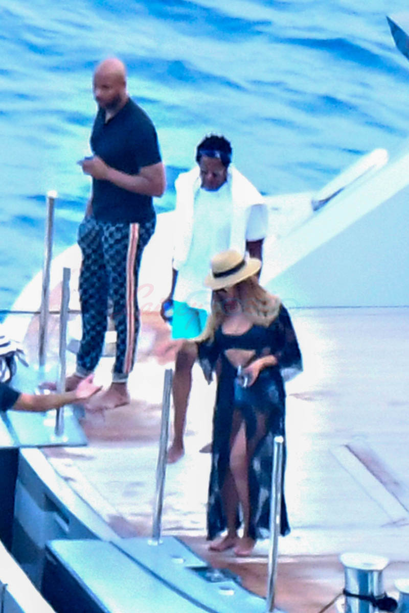 Beyoncé and Jay-Z, along with their children, are currently enjoying some downtime before kicking off the North American leg of OTR2. This weekend, their boat was on the Amalfi Coast. B and J were seen lounging on the deck. Paps got some long range shots of the twins, Rumi and Sir. Can we stop talking now about whether or not she’s pregnant and let her live? It’s summer. She’s enjoying her wine and her cheese and her pasta and she’s still up there on stage every night working that choreo harder than anyone else in the game.