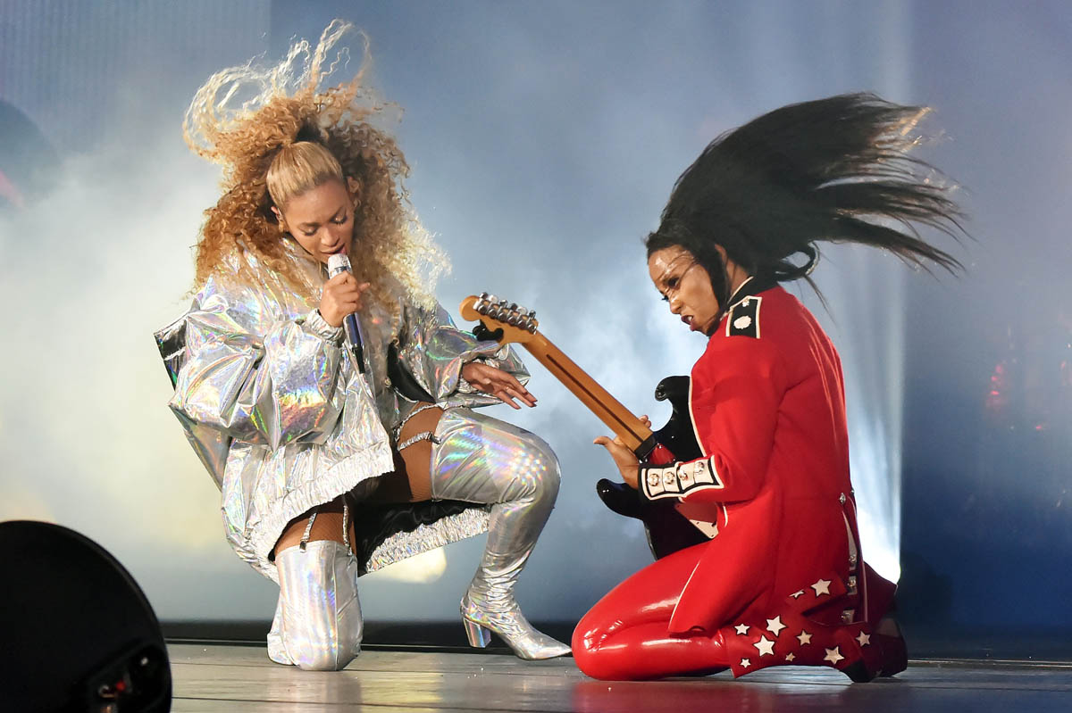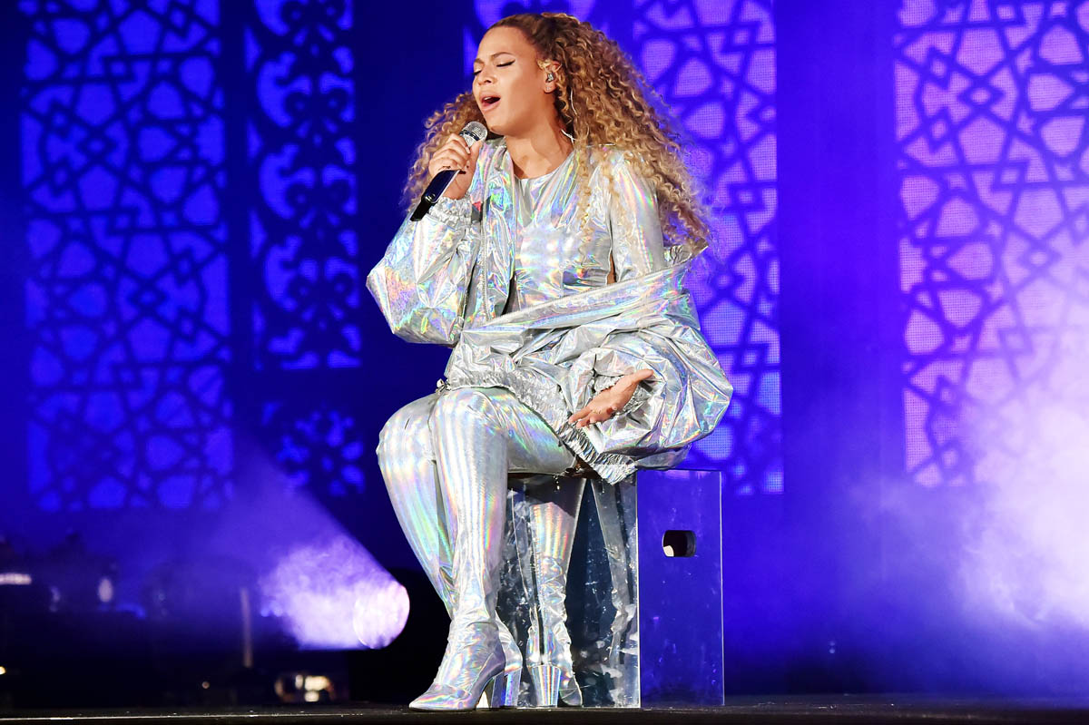The show is two and a half hours. There are two runways, one for each Carter. There’s a scaffold backdrop for the band. There’s a floating stage which, probably, Kanye West will have something to say about. But mostly… there are videos, filmed footage specifically for this tour and also, naturally, personal videos direct from the Beyoncé Giselle Knowles Carter archive because she knows now that we live for these drops. If you’ve been to a Beyoncé show before, this is how she’s trained us – you can’t look down, not even for a second, especially not during the interludes. Because this is when we get the gold.