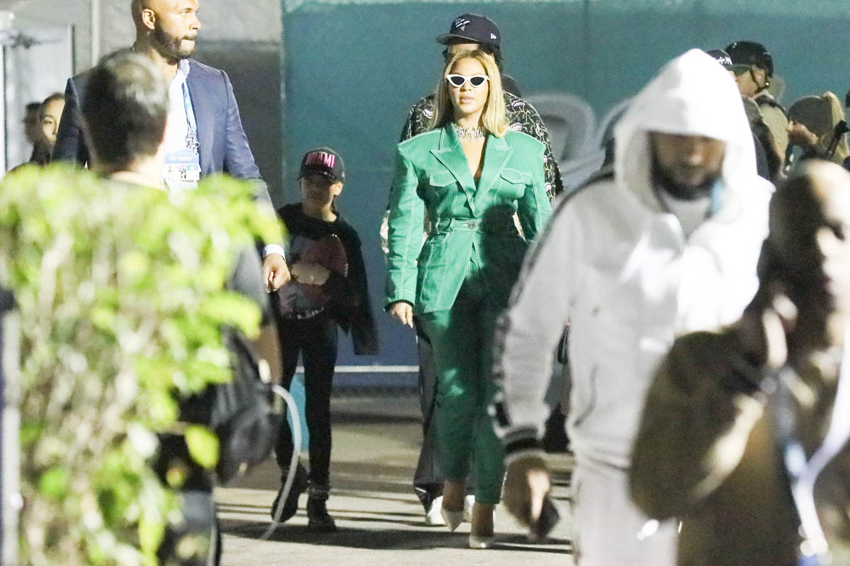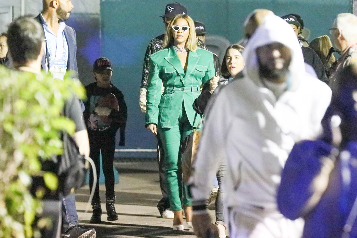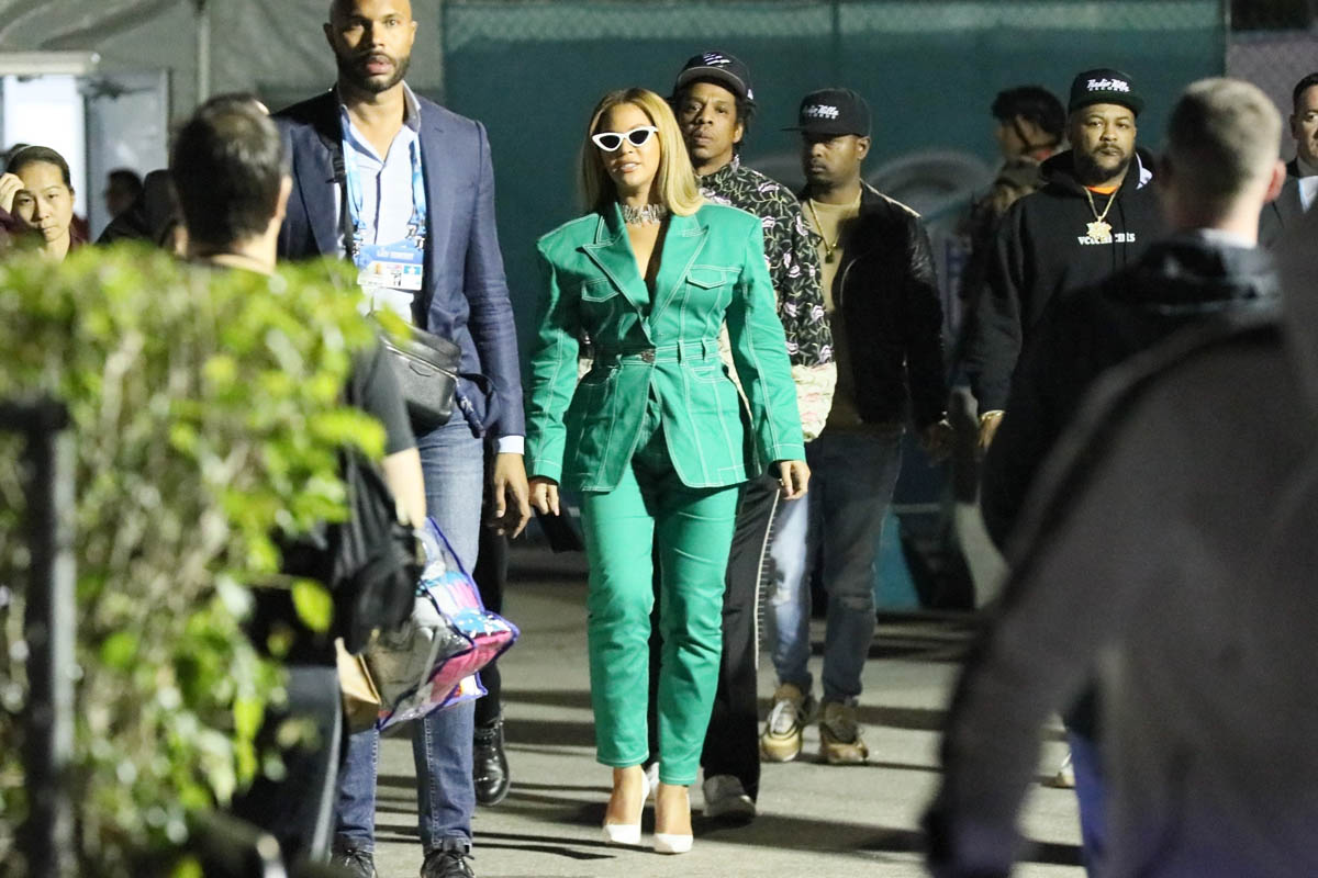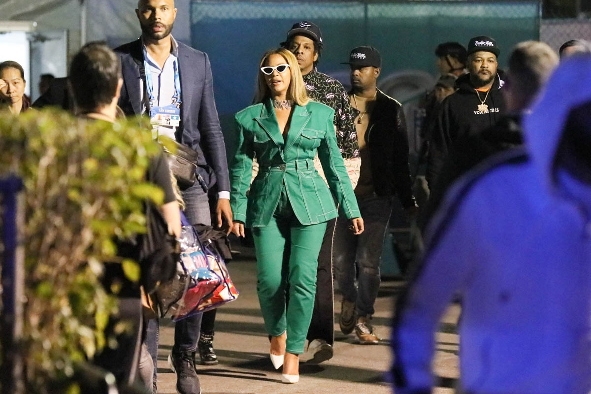 Beyoncé, Jay-Z, and the Blue Ivy Carter were at the Super Bowl yesterday in Miami. But first, please enjoy this viz of Blue bossing on the sidelines with her phone. She’s probably playing a game. But in my mind, she’s seeing something that needs improvement and, like her ma, is sending a note to her team all like… we need to be better than this sh-t! Also her outfit is better than her mother’s.