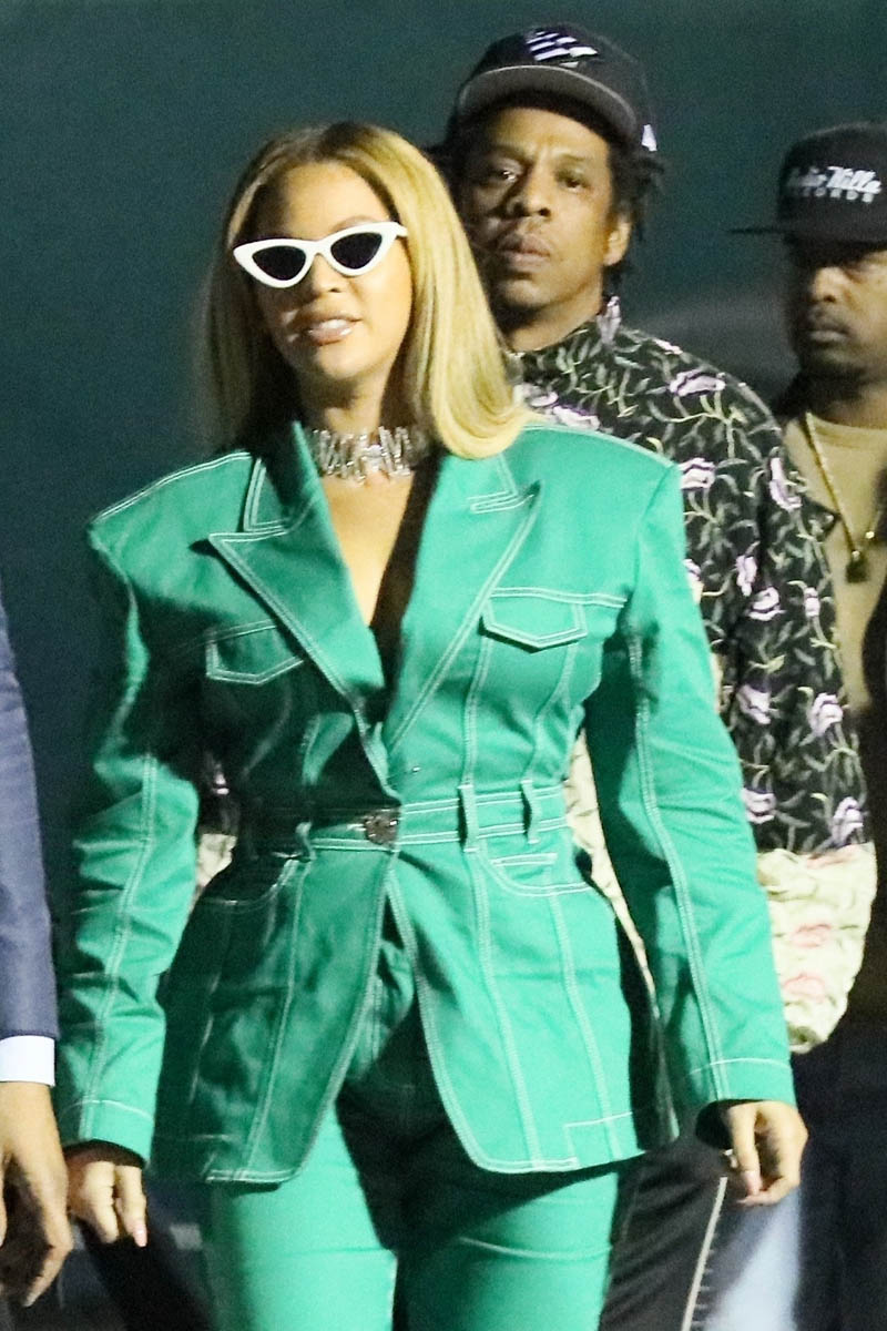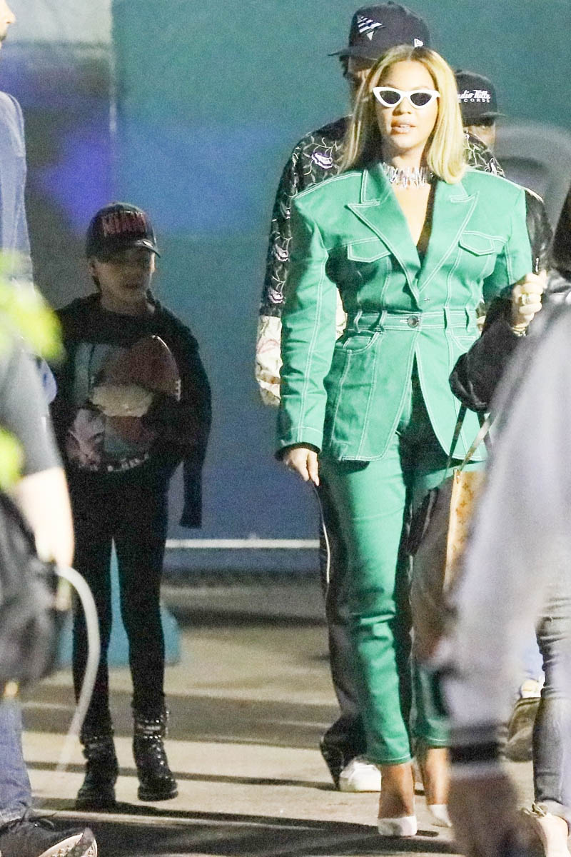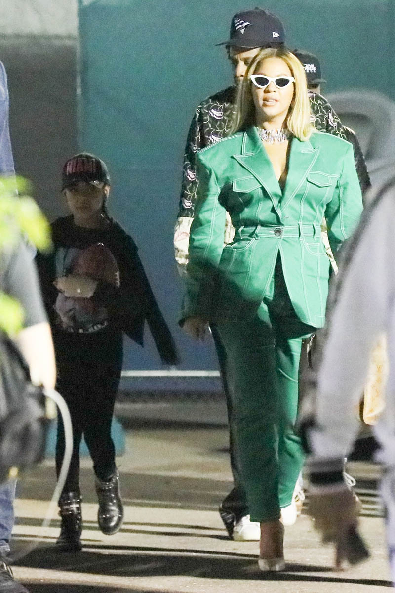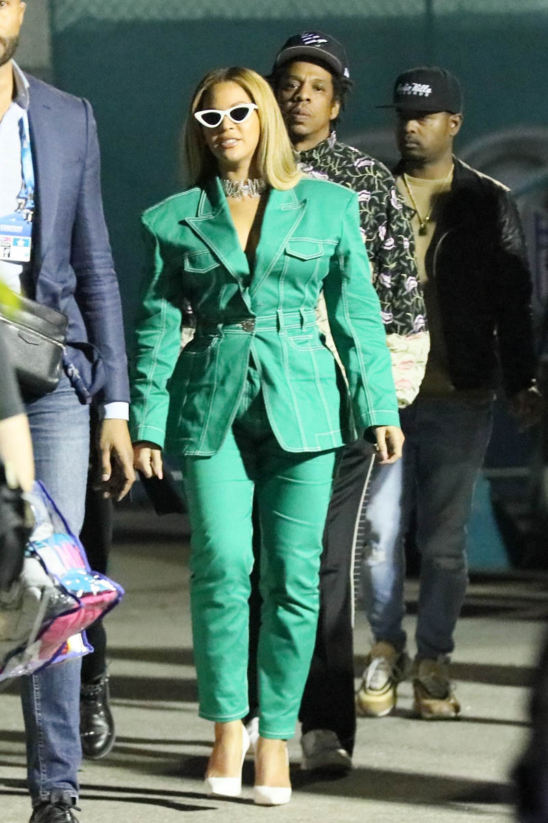 Beyoncé, Jay-Z, and the Blue Ivy Carter were at the Super Bowl yesterday in Miami. But first, please enjoy this viz of Blue bossing on the sidelines with her phone. She’s probably playing a game. But in my mind, she’s seeing something that needs improvement and, like her ma, is sending a note to her team all like… we need to be better than this sh-t! Also her outfit is better than her mother’s.