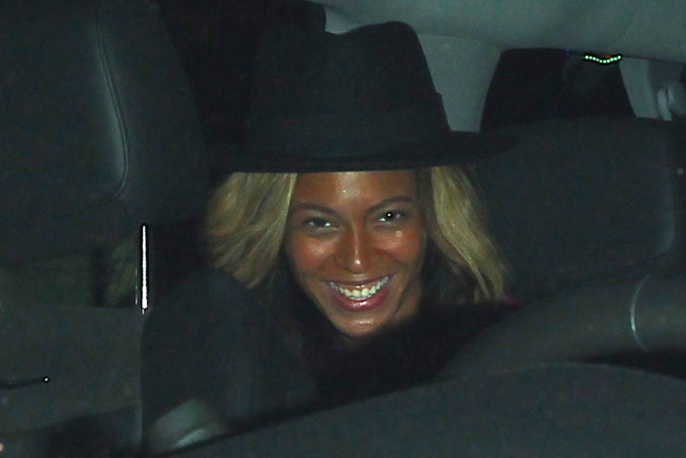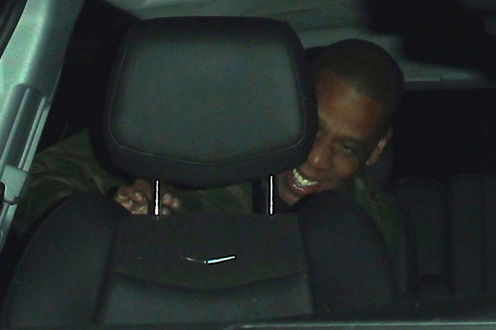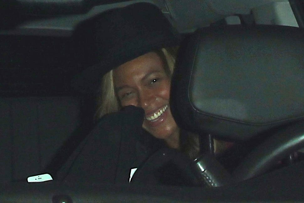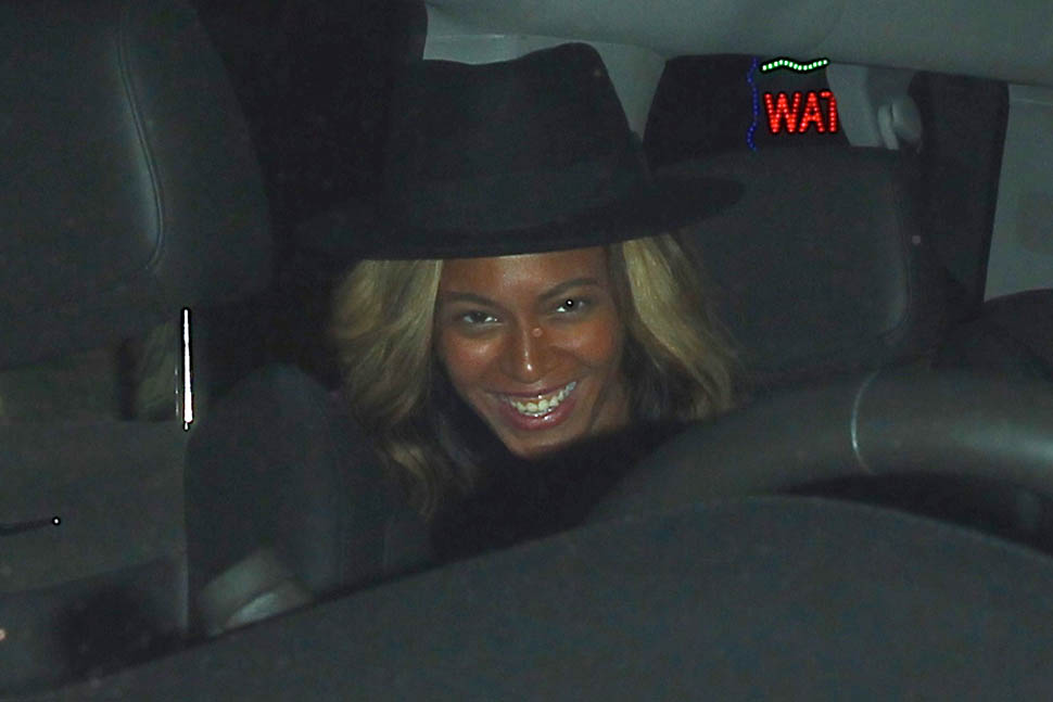 People keep talking though. And, well, I feel like if Beyonce is Beyonce and she actually has something to say, she’ll tell us at the Grammys. Or she’ll SHOW us at the Grammys. They’re on February 8th. Here are B and Jay out leaving dinner last night in LA in very good spirits. When I saw these shots, my first thought wasn’t that she looked pregnant. It was that she looked tipsy.