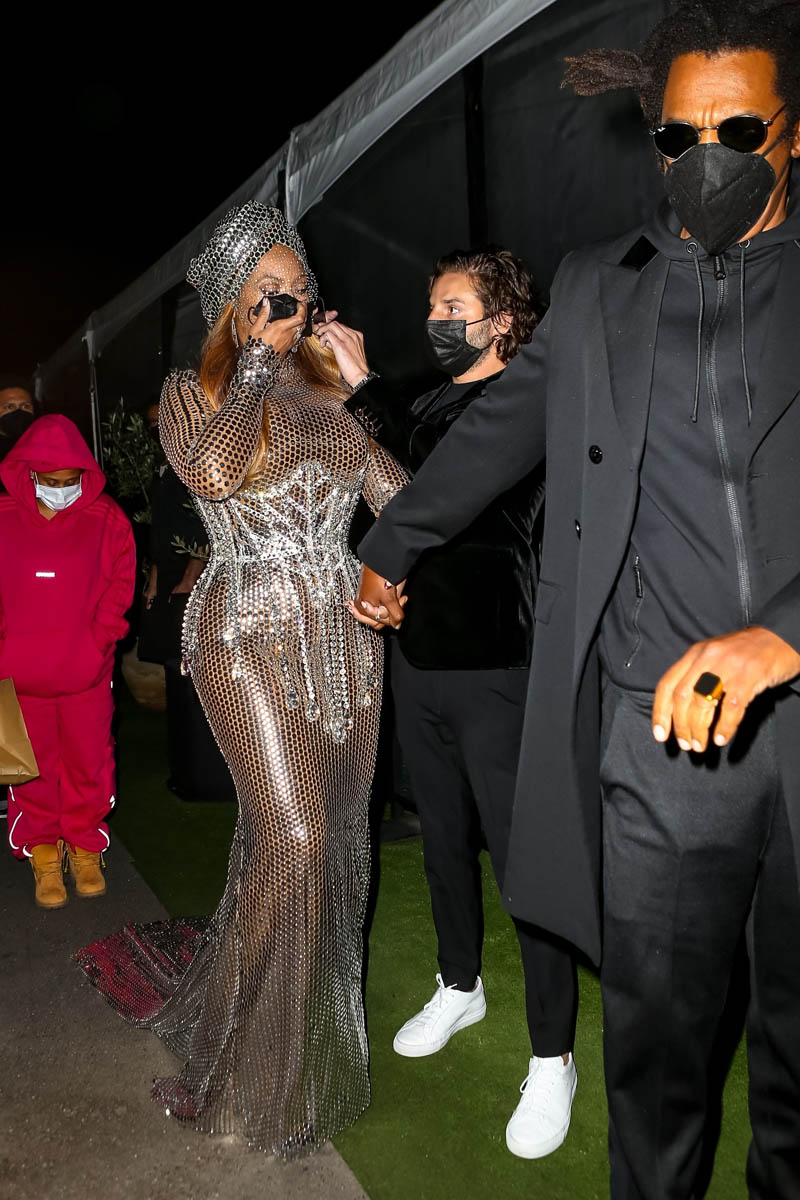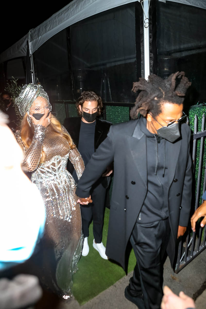 What’s for dinner is probably what she was really thinking. She and Jay went to Giorgio Baldi afterwards – with an outfit change. Please note that the outfit she changed into, AFTER the Grammys, was more spectacular than the little black dress she wore AT the Grammys. If clothing tells us anything, that’s what Beyoncé thinks of her Grammys record.