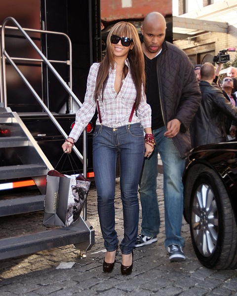 After performances out west last week, Beyonce returned home to husband Jay-Z in New York this weekend and the two had lunch together at Pastis on Sunday before heading off to promote his clothing line.