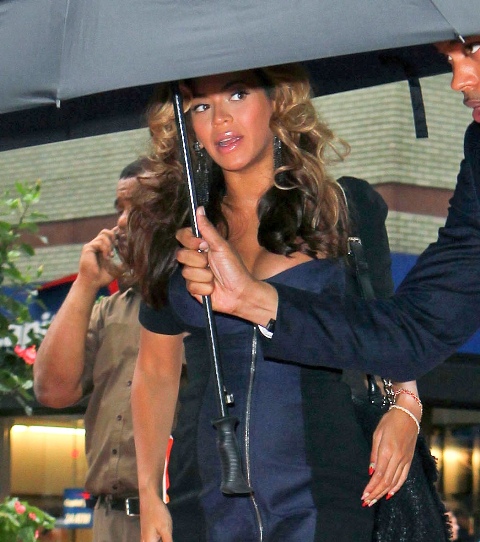 Beyonce stepped out today in New York. And here we go with the people who’ve been saying all week that her bump business is fake. And now I have to do something that makes me sick. I have to point out that one of the signs, to me anyway, that it’s not fake is that... she’s actually bigger everywhere.