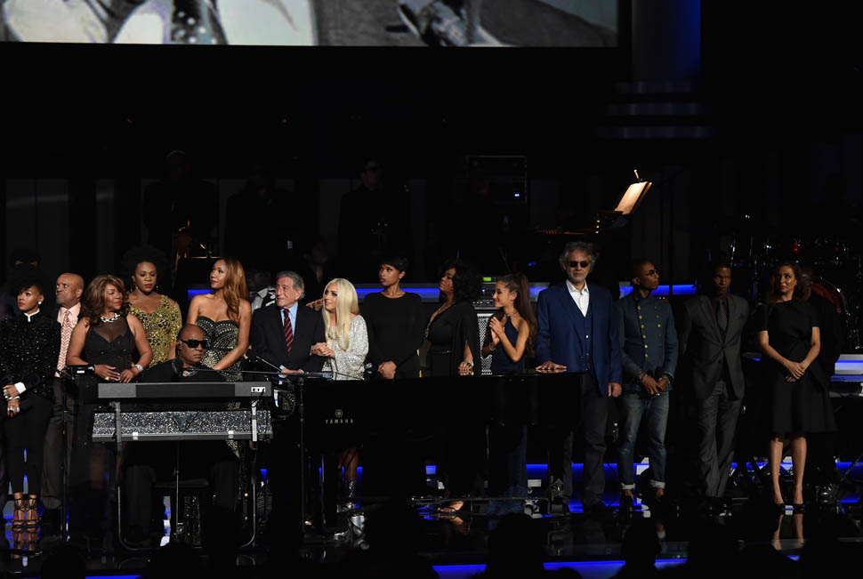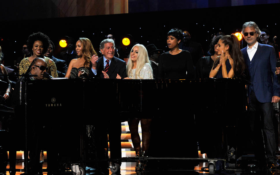 In addition to Gladys Knight, Annie Lennox, Tony Bennett and Lady Gaga, John Legend, the Band Perry, Jamie Fox, and I Can’t Ariana Grande, who can’t ever change her hairstyle, Beyonce was there with JayZ. She and Jennifer Hudson gave us a Dreamgirls reunion too, posing for a shot together backstage.