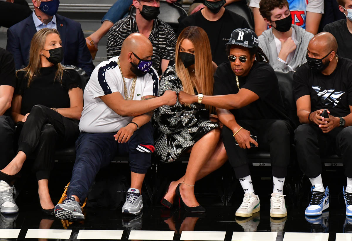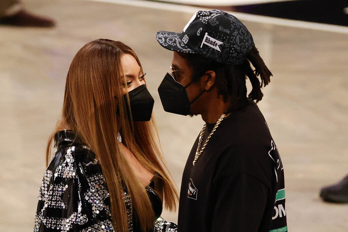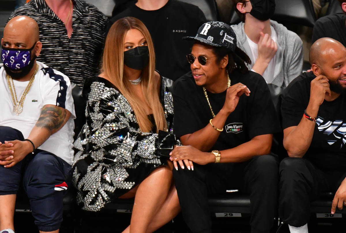 Beyoncé and Jay-Z were in New York this weekend to watch the Brooklyn Nets and the Milwaukee Bucks. As you can see, Beyoncé came to serve looks. This jacket is beyond, I want it so bad. But also, they came with the vibes. Like for each other. To some, the Carters read super close, with Beyoncé leaning in towards Jay and the handholding and the eye contact and the whispering and it’s cute. Although a part of me wonders too if she was also not feeling the dude sitting next to her which is why her body language is so closed to that person. Not that it matters – the point is, the Carters are tight, they’re quite obviously on a date night, having had dinner and hit up a party that night too. And B was definitely feeling it, as she posted on IG, mainly to show off herself in her outfit, as she should, but there’s a shot of Jay in the carousel too, and she chose one of her kissing him: