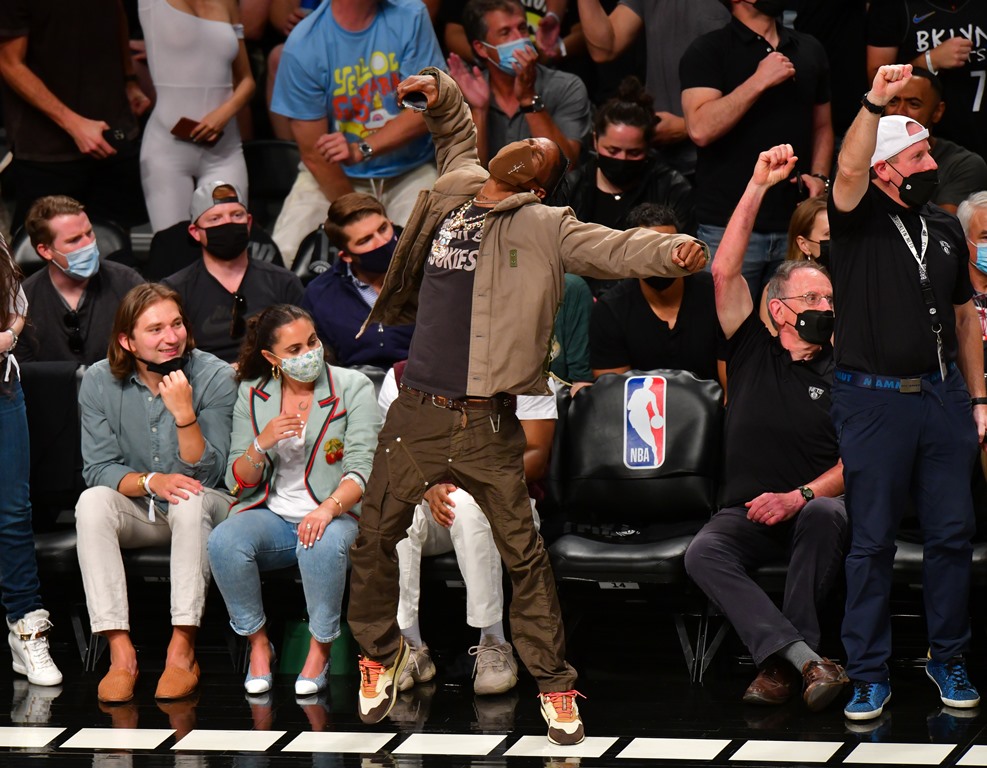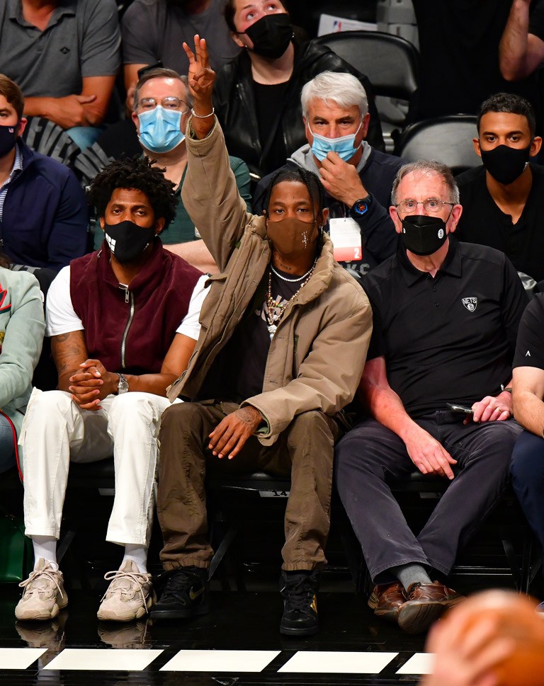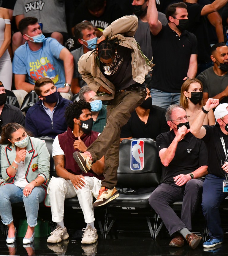 Travis Scott. Known for his high energy stage performances – he is famous for throwing and thrashing his body around – and he was letting out some of that electricity on the sidelines.