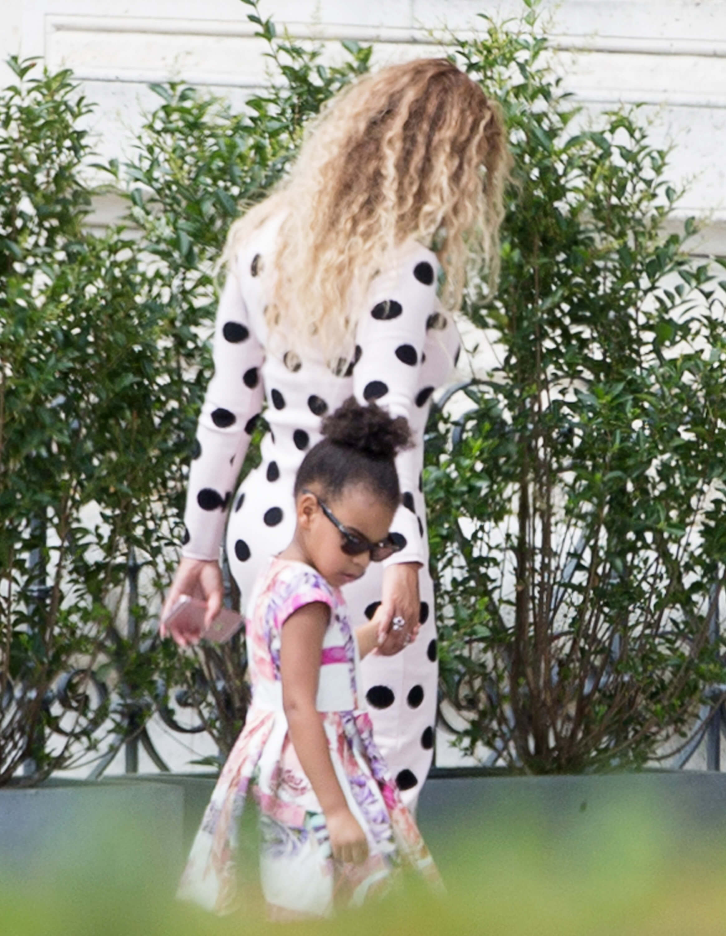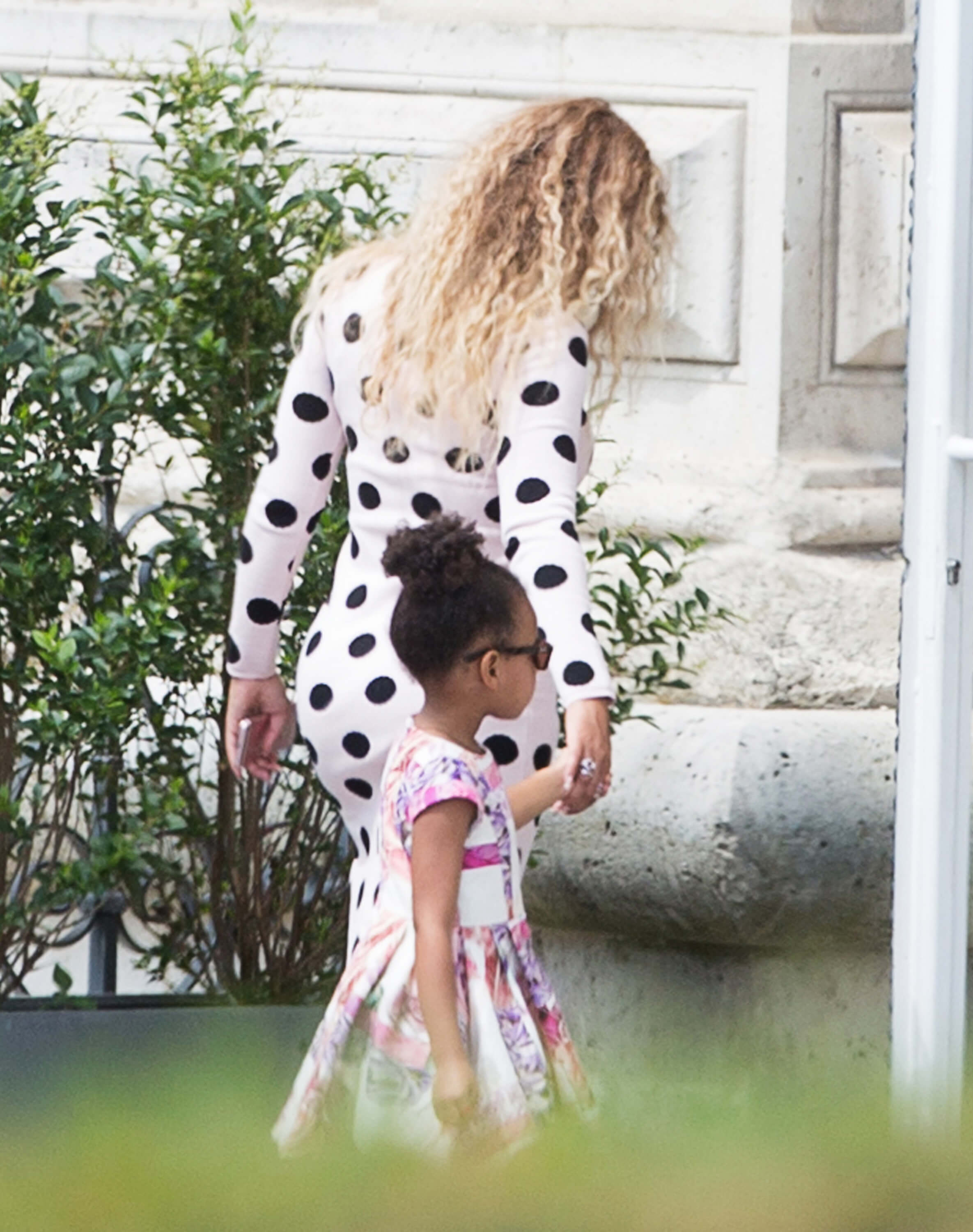 In celebration of VMA nomination day, because Beyoncé knows time before time happens, Beyoncé let herself get papped in Paris today. Since Beyoncé can never be sure of the quality of pap photos, Beyoncé also personally released a whole set of new photos on Instagram, including ones with Blue, in which they’re wearing mother-daughter matching Gucci.