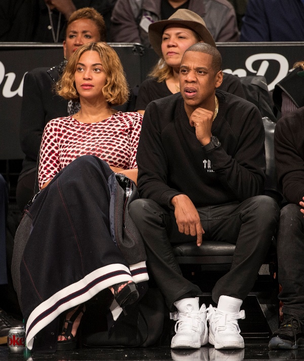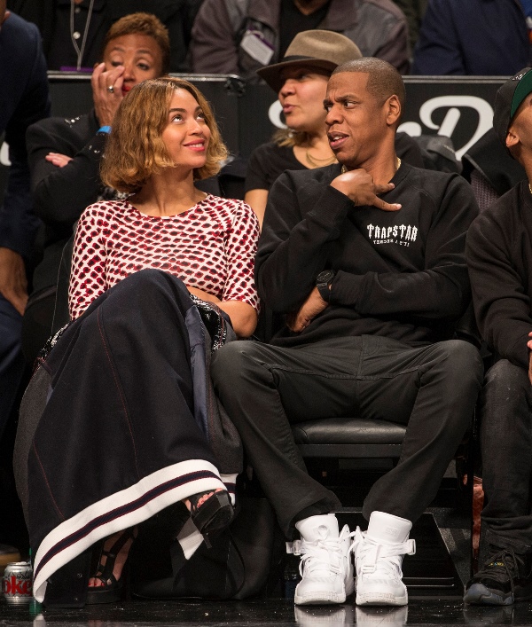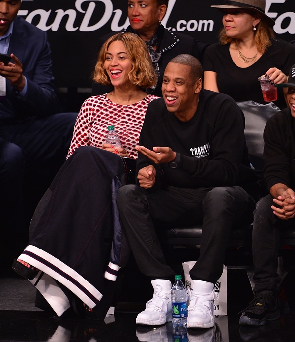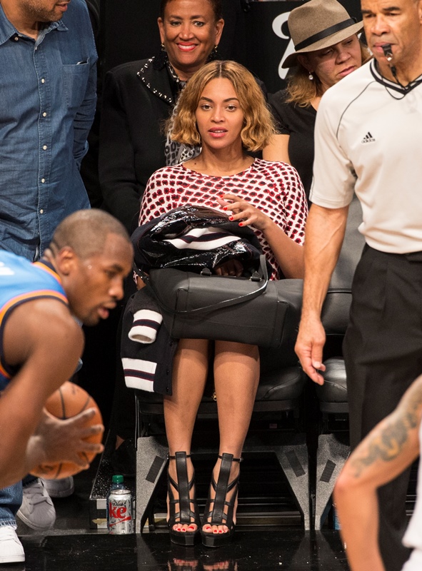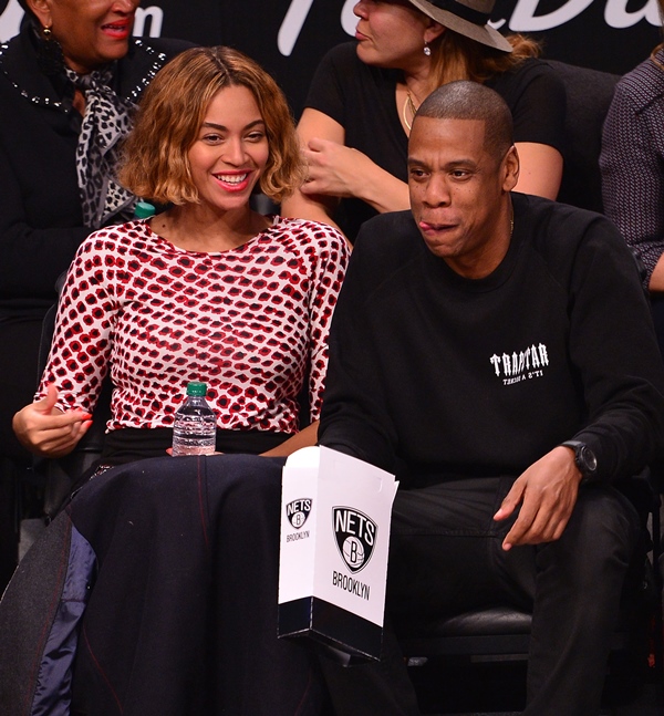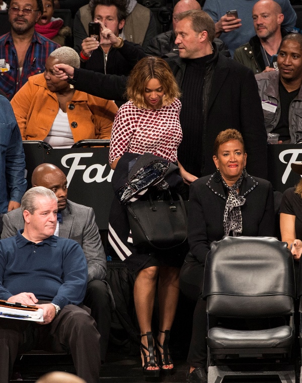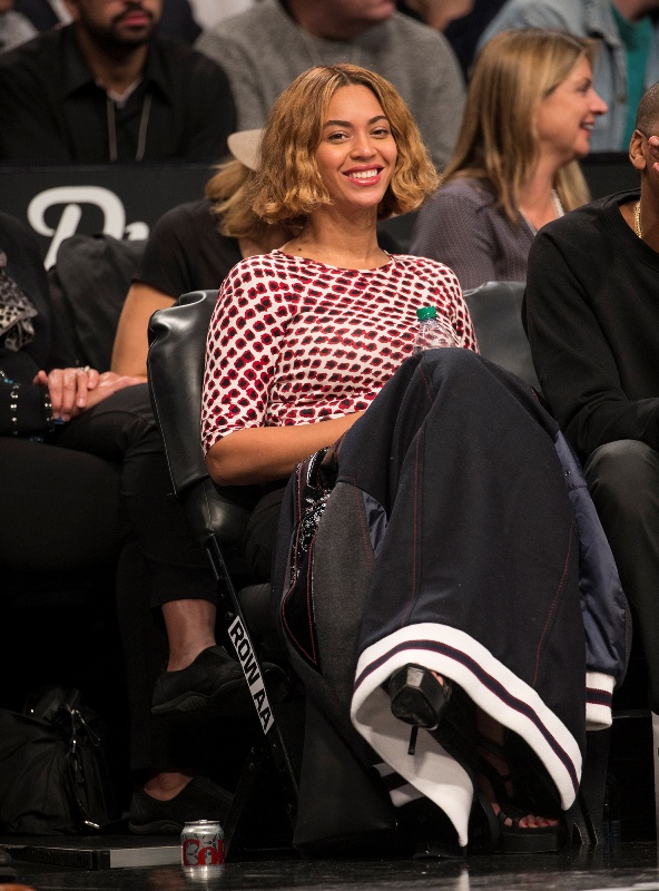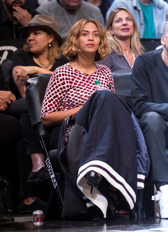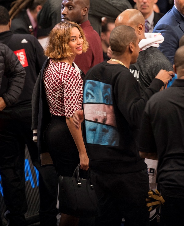 Beyonce and JayZ (with Ty Ty tagging along) were courtside at Barclay’s last night to watch the Nets. As you can see, she re-bobbed. We’ll come back to these shots in a minute but first…