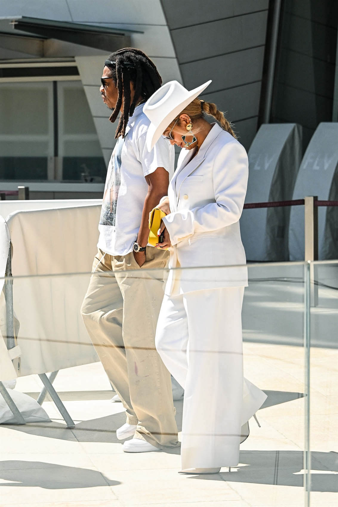 It’s Paris Fashion Week for menswear and the biggest show on the calendar today was Louis Vuitton where Pharrell presented his latest collection. LV is always well attended… but when Beyoncé decides to show up, it’s the MOST well attended. Beyoncé dedicated much of her day to LV, first stopping by in all white to Fondation Louis Vuitton earlier in the day with Jay-Z…