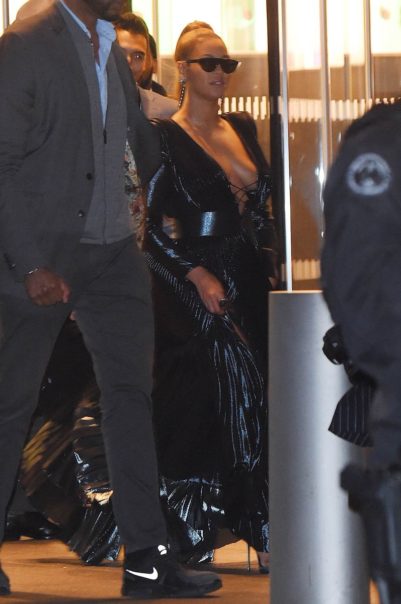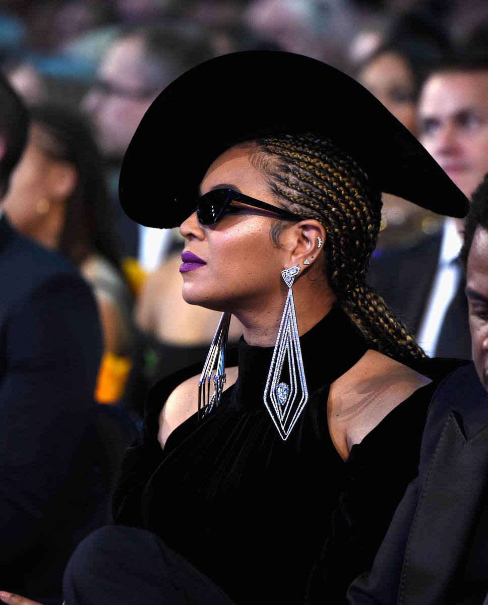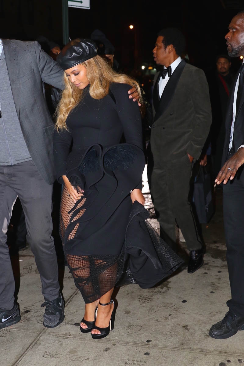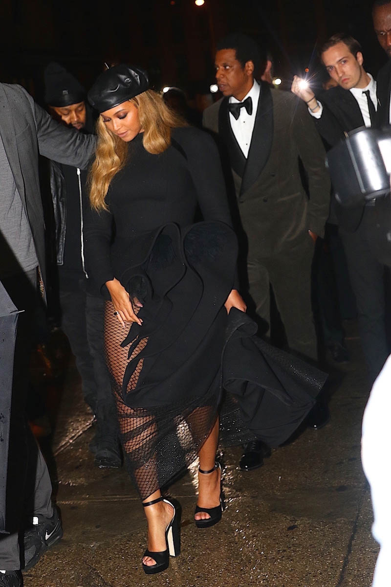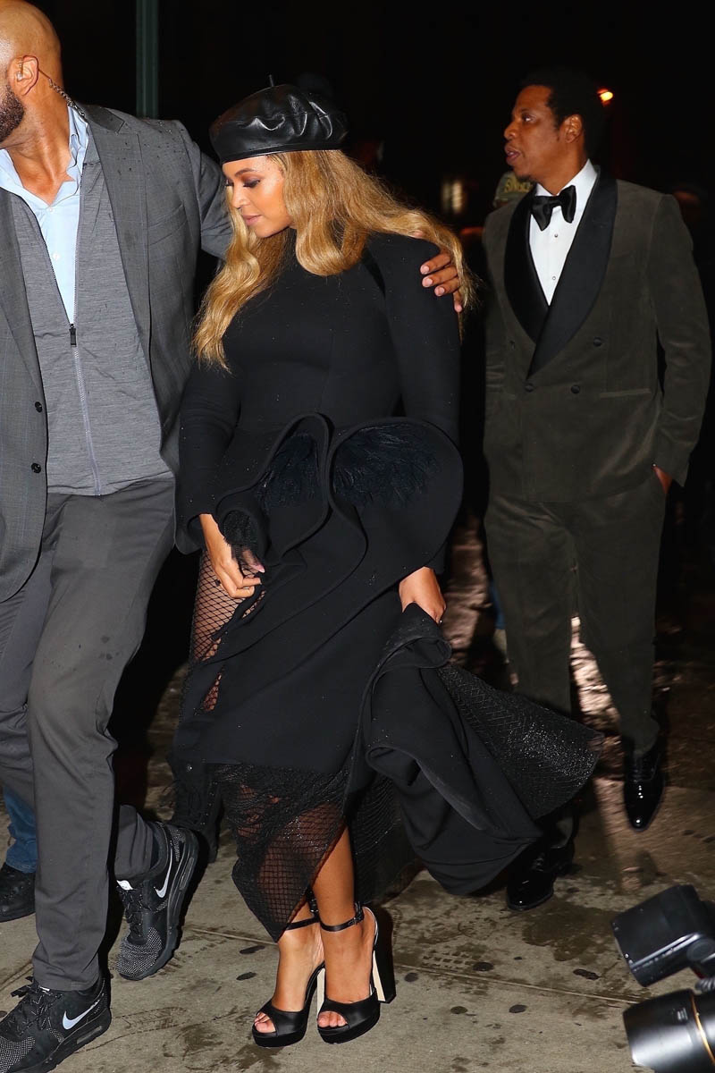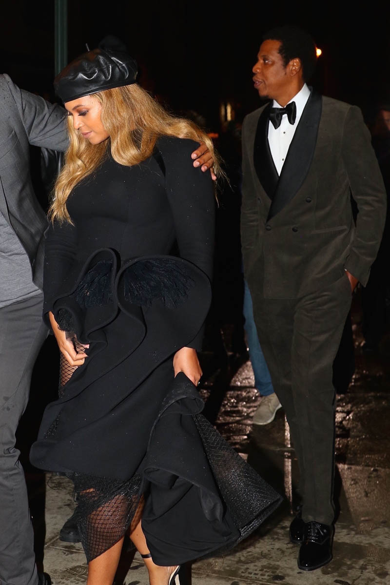 As you know, on Saturday night, Beyoncé and Jay Z attended Clive Davis’s annual pre-Grammy gala. Her dress was Azzi & Osta with a black beret. Very Bonnie & Clyde. But also very Black Panthers. Just like when she performed Formation at the Super Bowl a couple of years ago.
