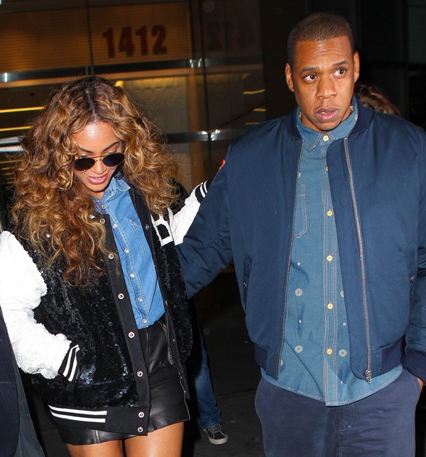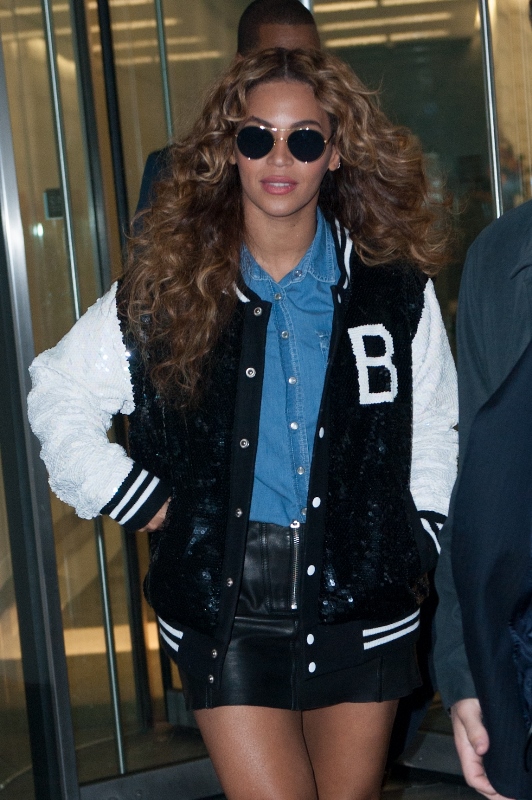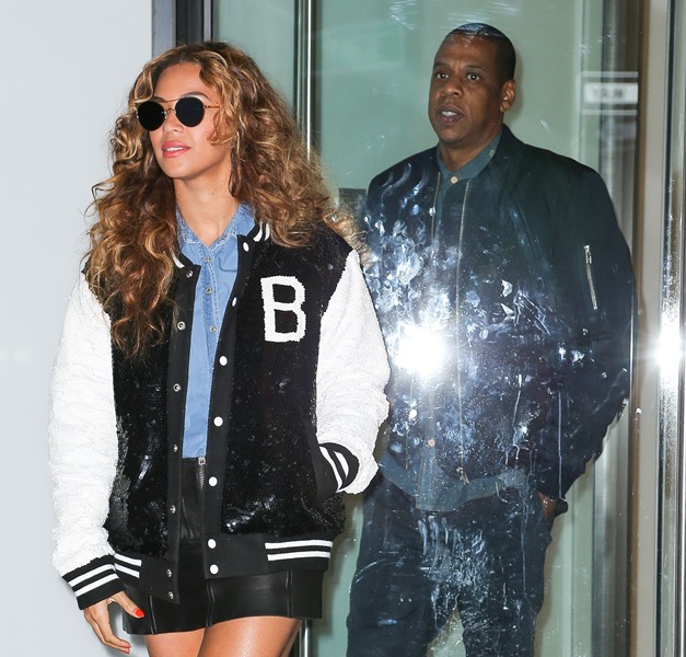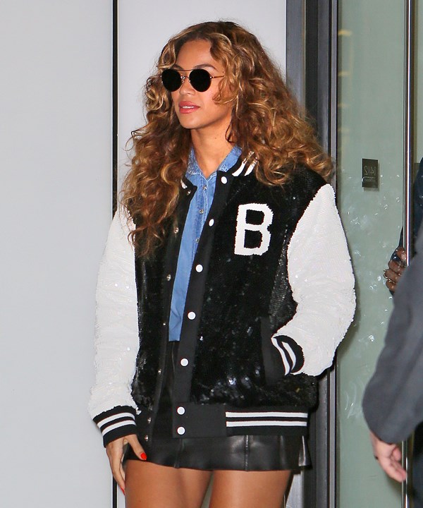 In advance of the American Music Awards – and the RIDICULOUS fact that Iggy Azalea was nominated for more awards than she was, WTF? – Beyonce dropped her video for 7/11 on Friday. Which is what everyone was talking about for most of the weekend. And she stepped out with Jay wearing a “B” in the front, “BOW DOWN” in the back varsity jacket just in case you don’t get the point…