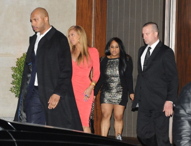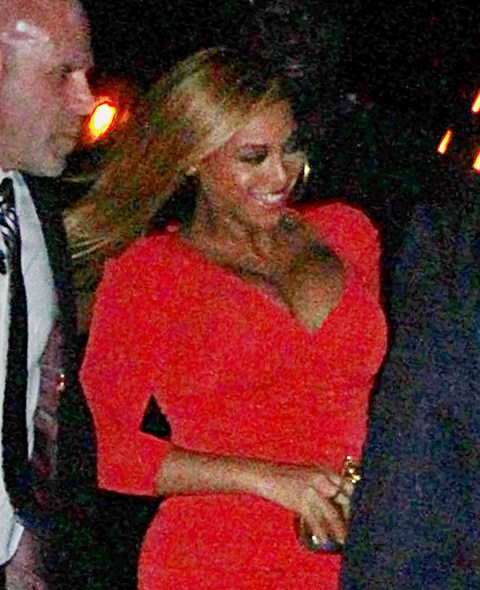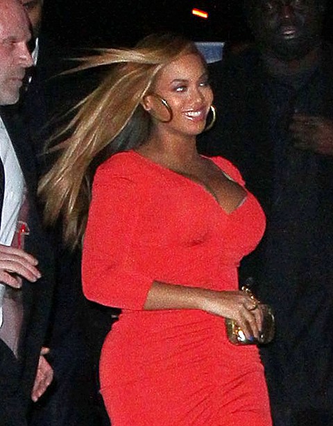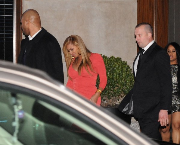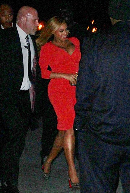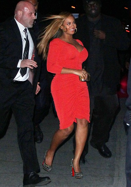 Blue Ivy Carter’s mother stepped out last night for the for the first time since she was born, triple spanxed and ready to be photographed just 6 days before the Grammy Awards. Jay-Z performed at Carnegie Hall in to benefit The United Way and the Shawn Carter Foundation. As you can see, Beyonce made an appearance in red in support of her husband.