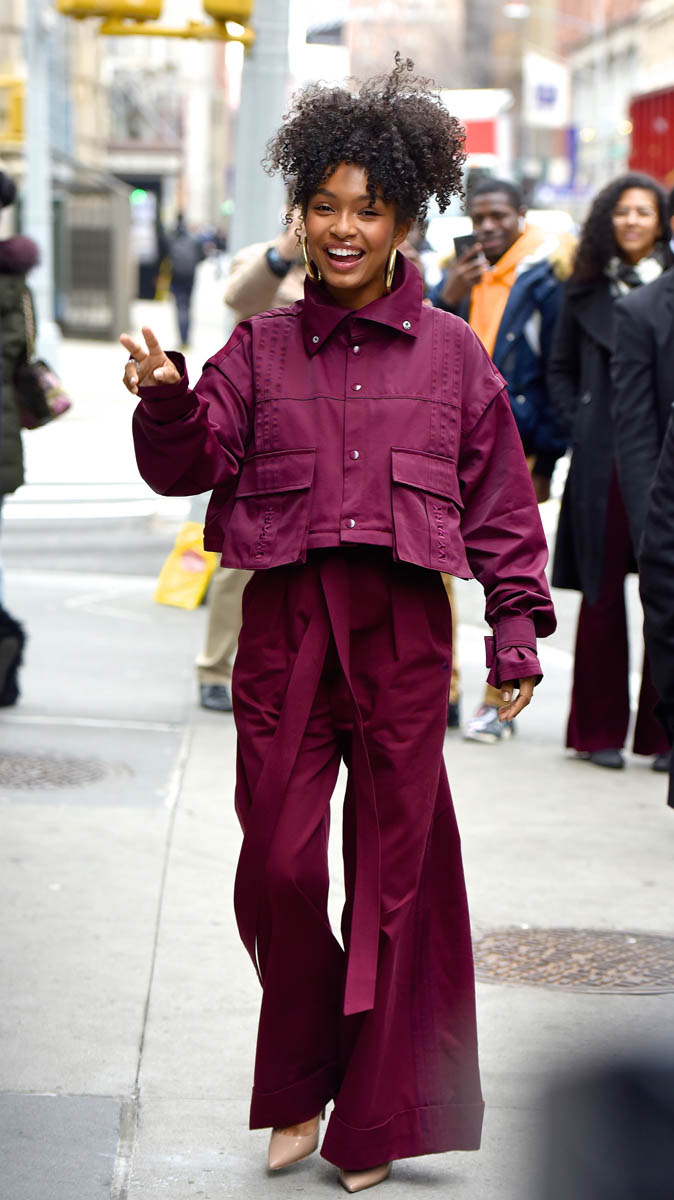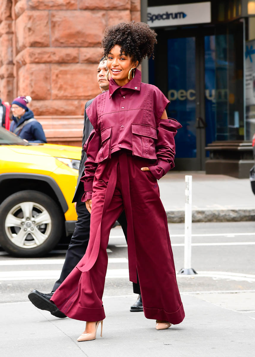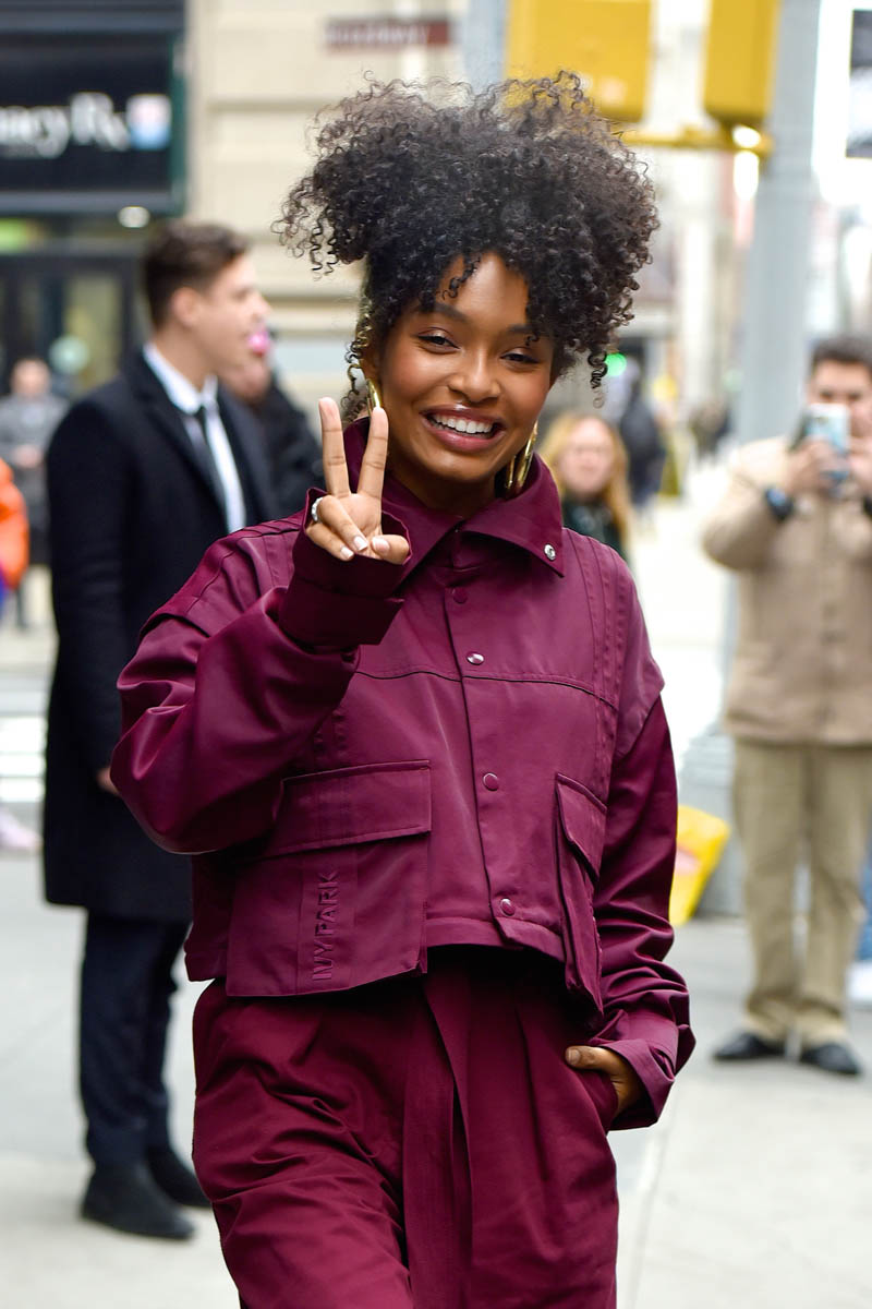 Attached - Yarah Shahidi arriving at AOL Build in IVY PARK.