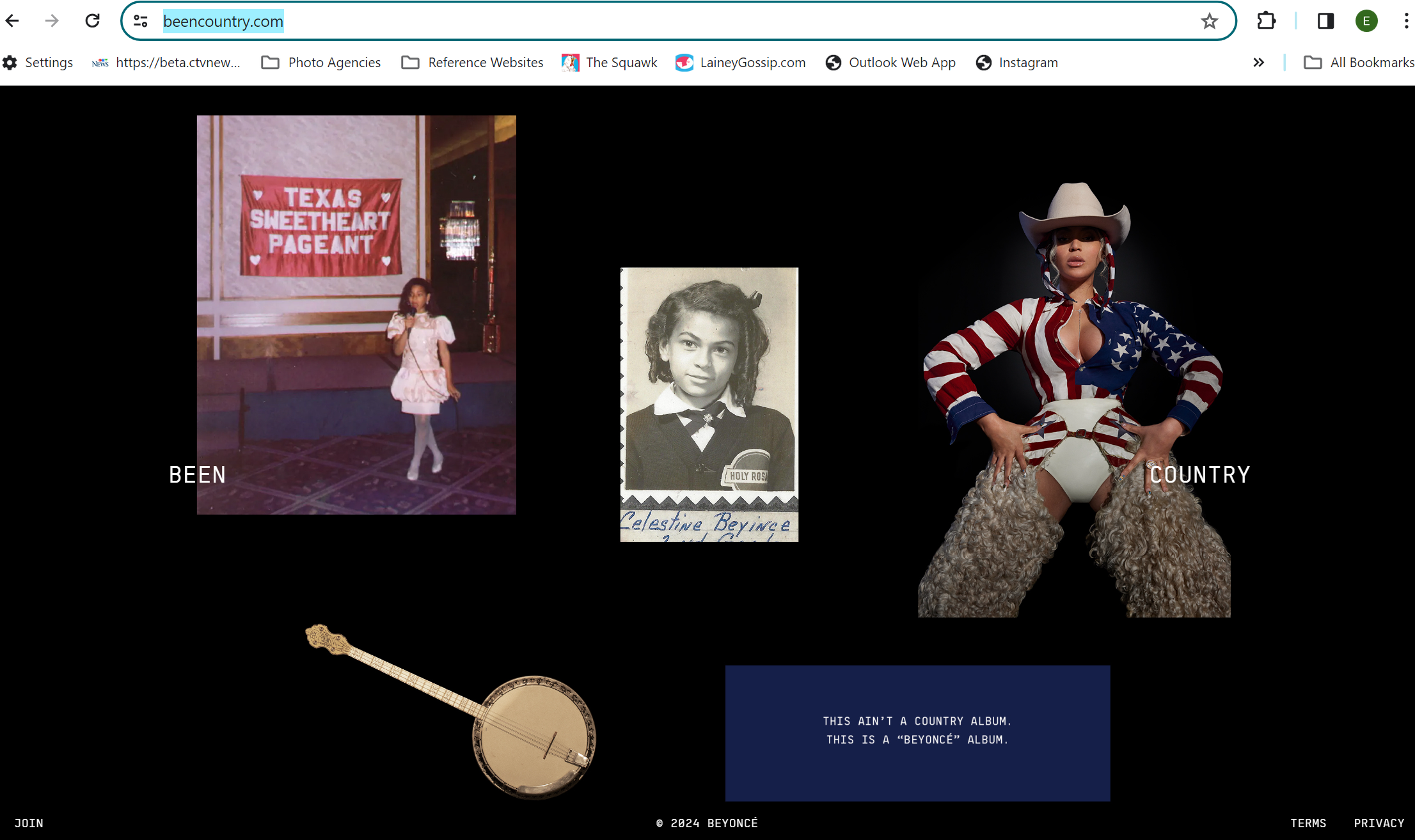 The solar eclipse is happening on Monday. And yesterday Beyoncé gave us a new website with a mystery purpose. BEENCOUNTRY.com came up yesterday and it’s an archive photo of Beyoncé at the Texas Sweetheart Pageant from when she was a little girl, plus a yearbook photo of Miss Tina with the misspelled last name that was given to her ancestors (BEYINCÉ), a current shot of Beyoncé is furry chaps, and a banjo. With the caption: