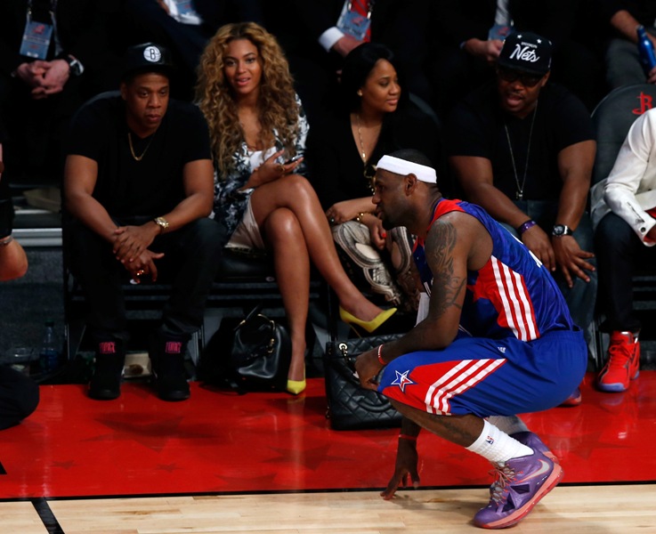 Also attached -- Beyonce and Jay-Z at the NBA All Star Game yesterday in Houston where one after another, celebrities and athletes alike were stopping by to pay their respects.