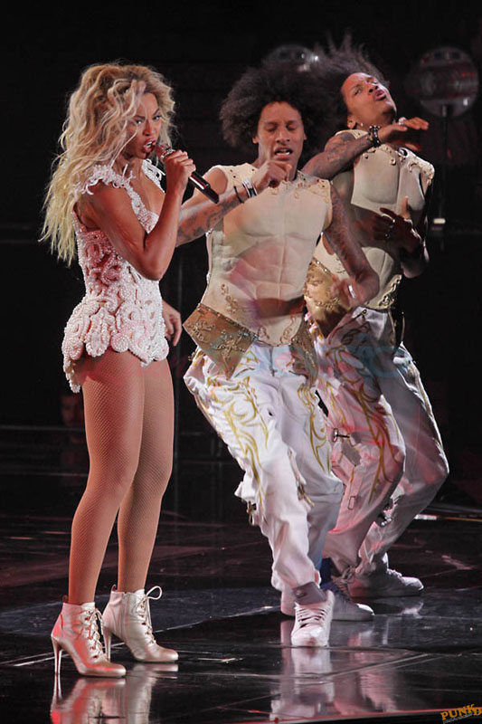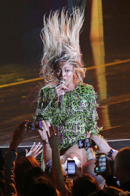 Beyonce played Vancouver on Saturday night. Some of these costumes are different from when I saw her in Toronto in the summer. A few people I know who were at the show say that some of her faces seemed different too. That there is a little Kanye West’s fiancée in there now. But maybe it’s the other way around. Maybe it’s Kanye West’s fiancée who’s trying to look like Beyonce, especially now with the blonde hair. Let me know your thoughts.