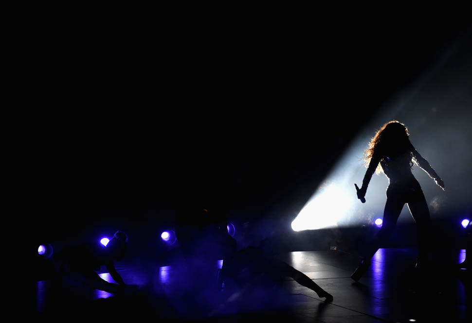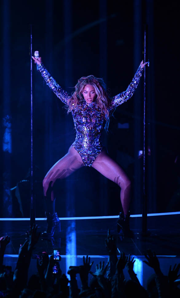 This is currently the final exam at the Faculty of Celebrity Studies. There is so much to process! Beyond the dance moves and the facial expressions, we still need to break down the lyrics. Why did she choose specific passages and sections from those particular songs? You want to start examining her messages? She’s f-cking you with her messages. While we argue about whether or not Beyonce is a feminist, she’s standing, solo, in silhouette up against the word. She’s giving you all kinds of new course material to parse, to debate, to make into history, then legend…as she builds her own presidential library and marks her own milestones.