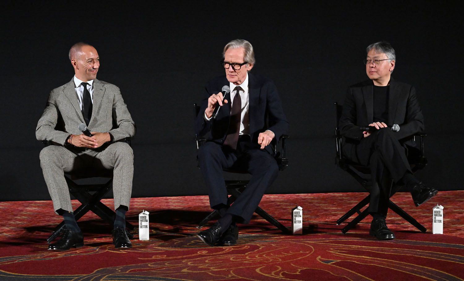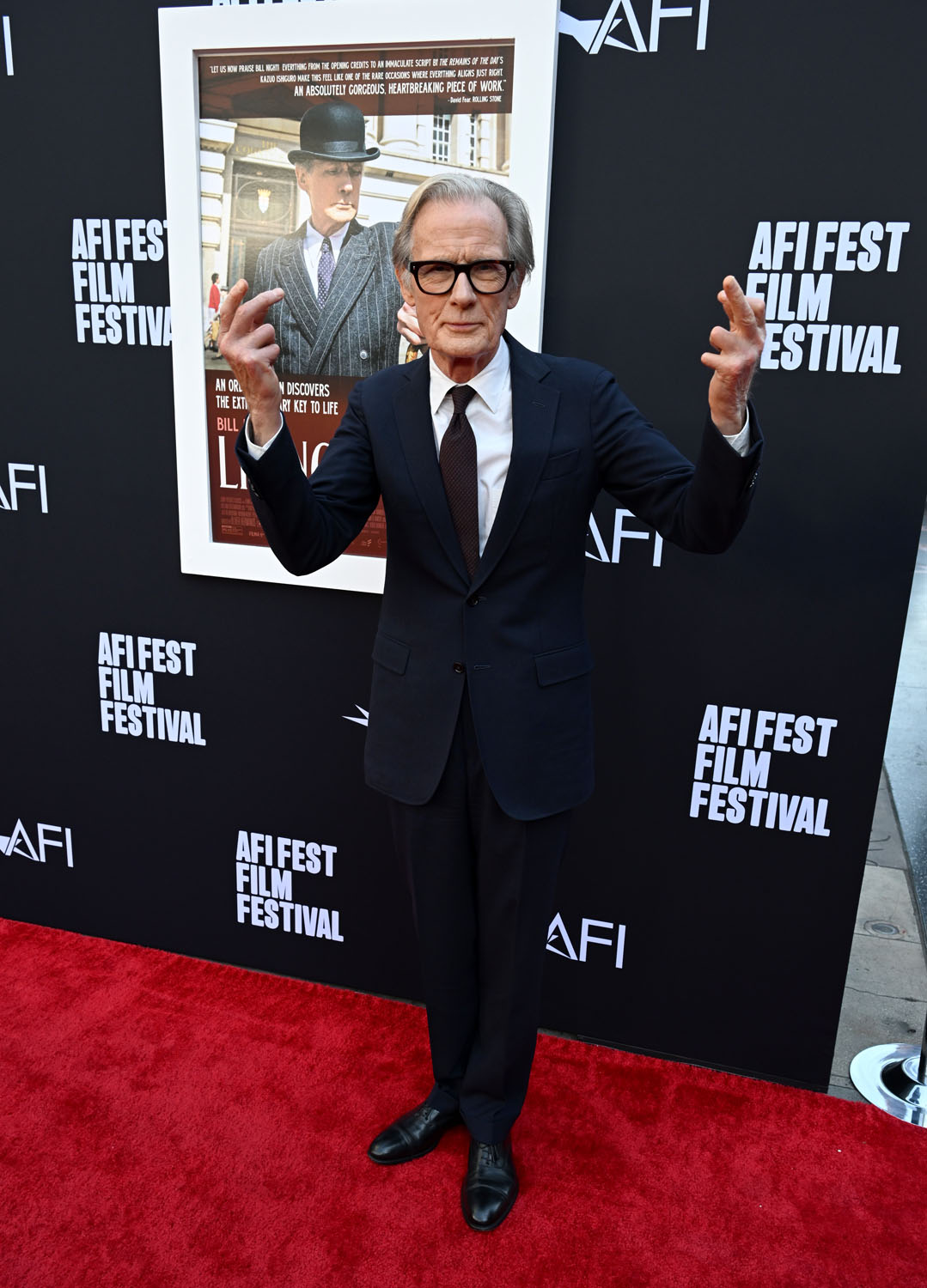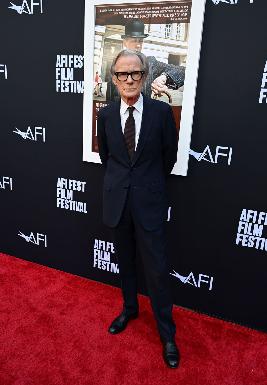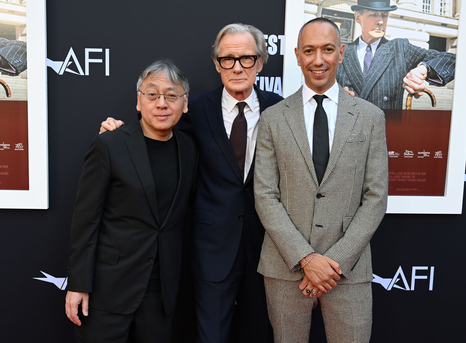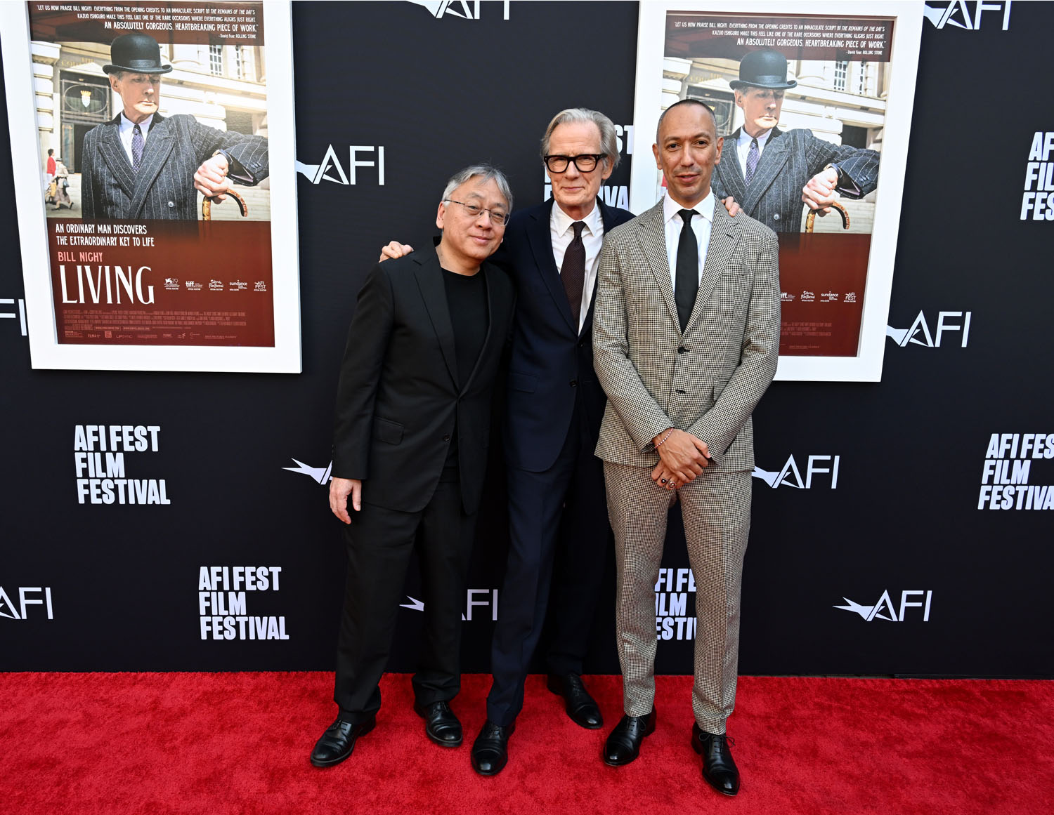If there is a frontrunner it might be Colin Farrell for his work in The Banshees of Inisherin followed closely by Brendan Fraser in The Whale. And now… Bill Nighy has emerged as a contender for his performance in Living, directed by Oliver Hermanus, an adaptation of Kurosawa’s Ikiru by Nobel Prize winner Kazuo Ishiguro. Critics are saying it's the best performance of his career, and it was already an illustrious career. Here he is, with Kazuo and Oliver, at the AFI premiere last night.