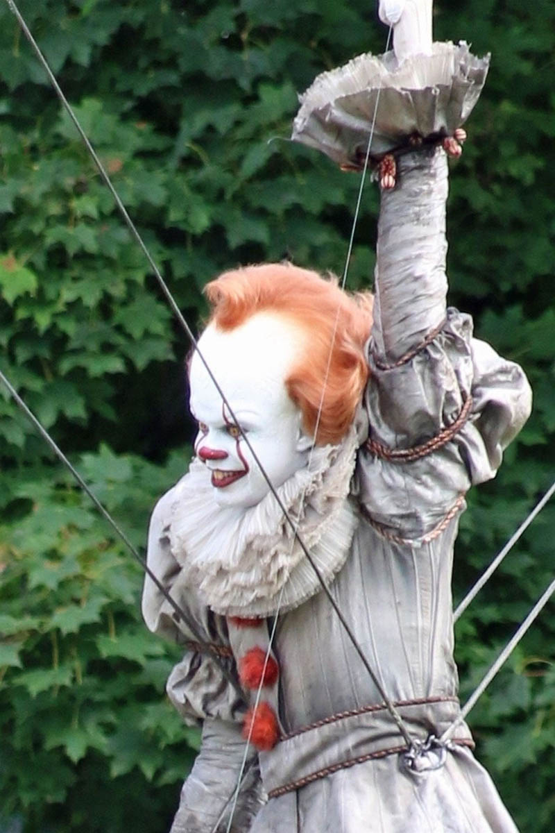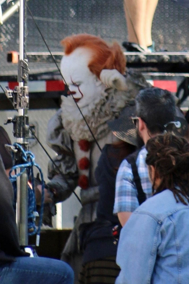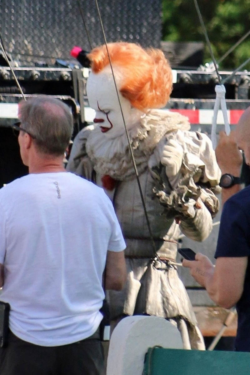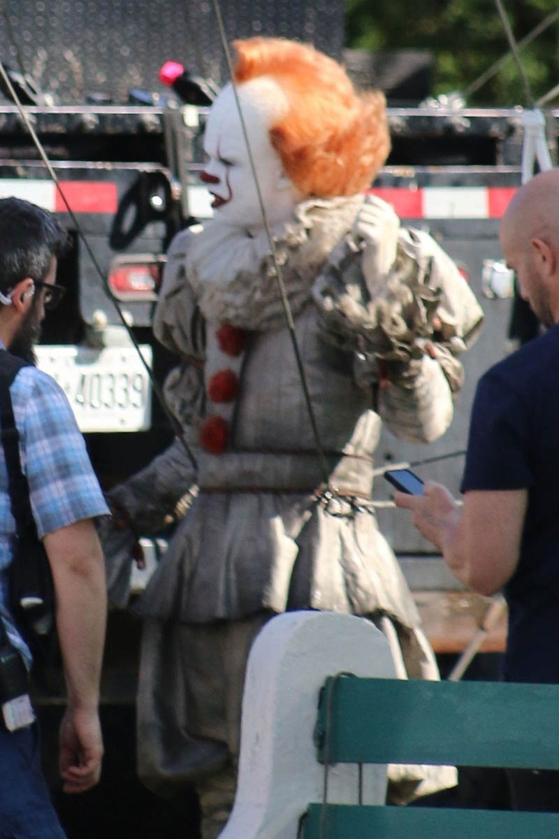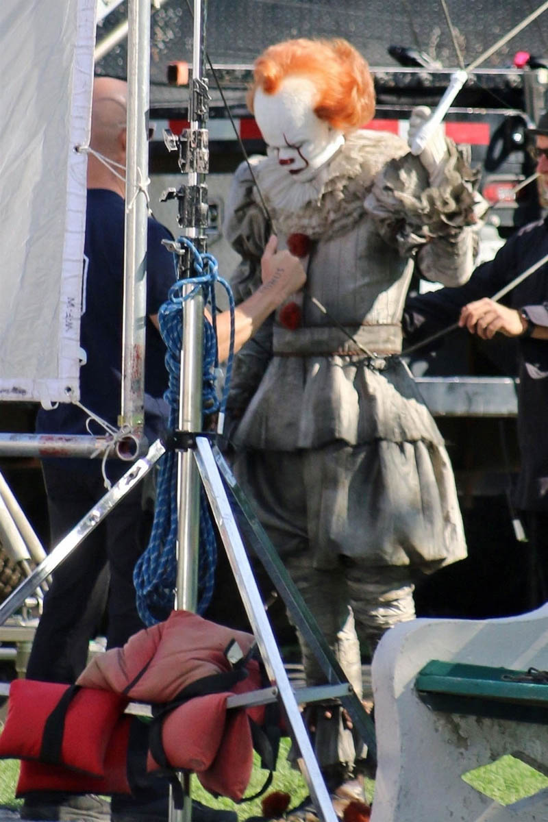 Here are photos from the set of It: Chapter 2, showing Bill Skarsgard as Pennywise the Clown. Last year, after It came out, the internet developed a thirst for Pennywise because the internet has both notoriously awful taste (I don’t care how well Kayleigh Donaldson puts it, Thanos is a genocidal nutjob and a Bad Crush Object) and too much time on its hands. Let’s be very clear: Pennywise is NOT HOT. Pennywise is some kind of spider-alien-demon with a penchant for clowns and Elizabethan fashion. He is NOT HOT. He is, in fact, super gross. He has horrible dental hygiene and a tendency to drool and his hair is ludicrous. Again: NOT HOT.