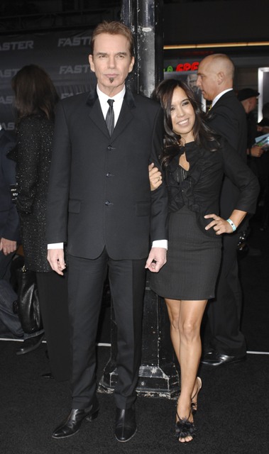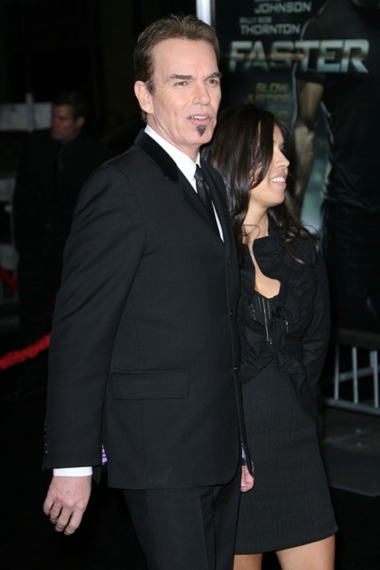 It’s Billy Bob Thornton last night in Hollywood at the premiere of Faster with a new middle aged dye job and that nasty douche patch fronting like he still gets to f-ck Angelina Jolie every night. The automatic response to that, of course, is ... HOW? Could she?