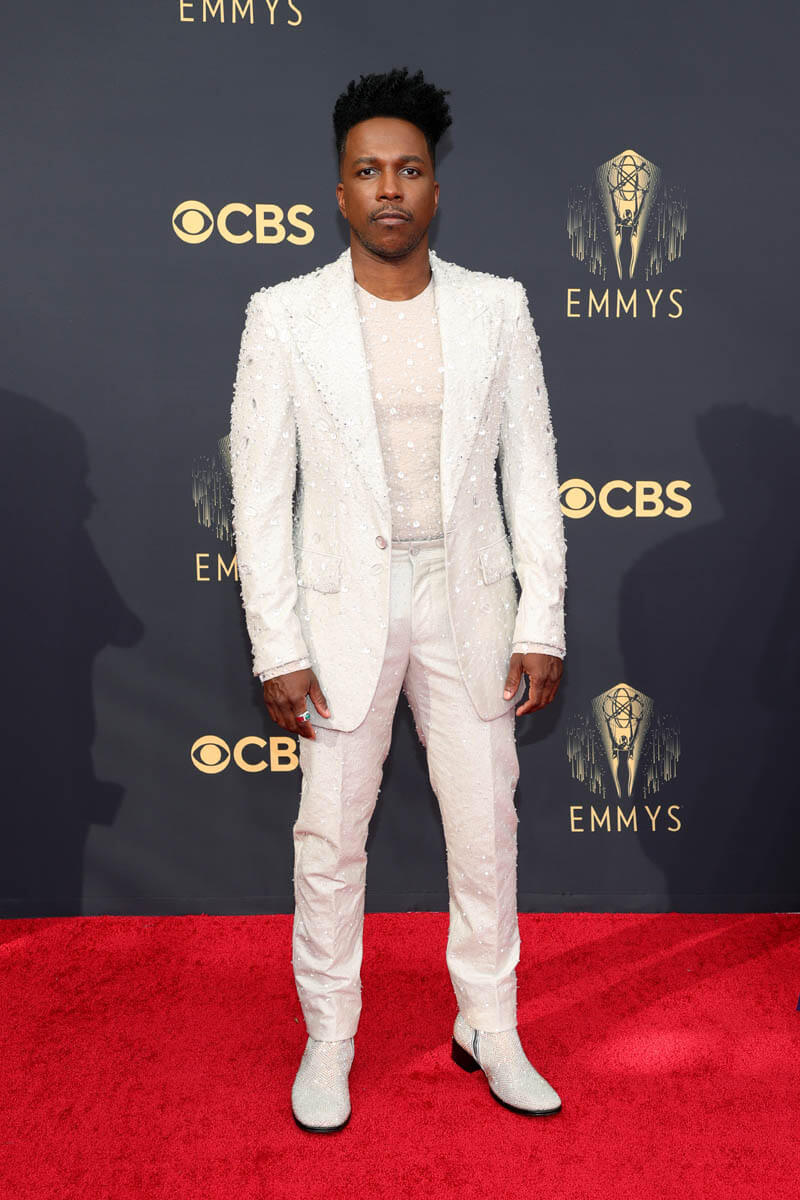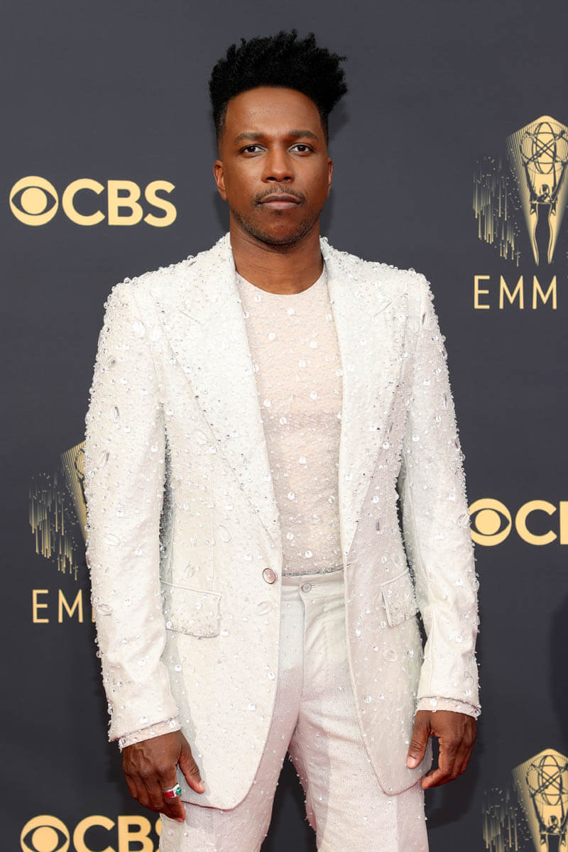 That’s been Leslie Odom Jr’s lane for the last couple of years on the carpet – he’s always experimenting with colours and fabrics, and this time it’s all white, embellished, including the t-shirt underneath. Again, something we typically see on a dress and now they’ve incorporated it into suits.