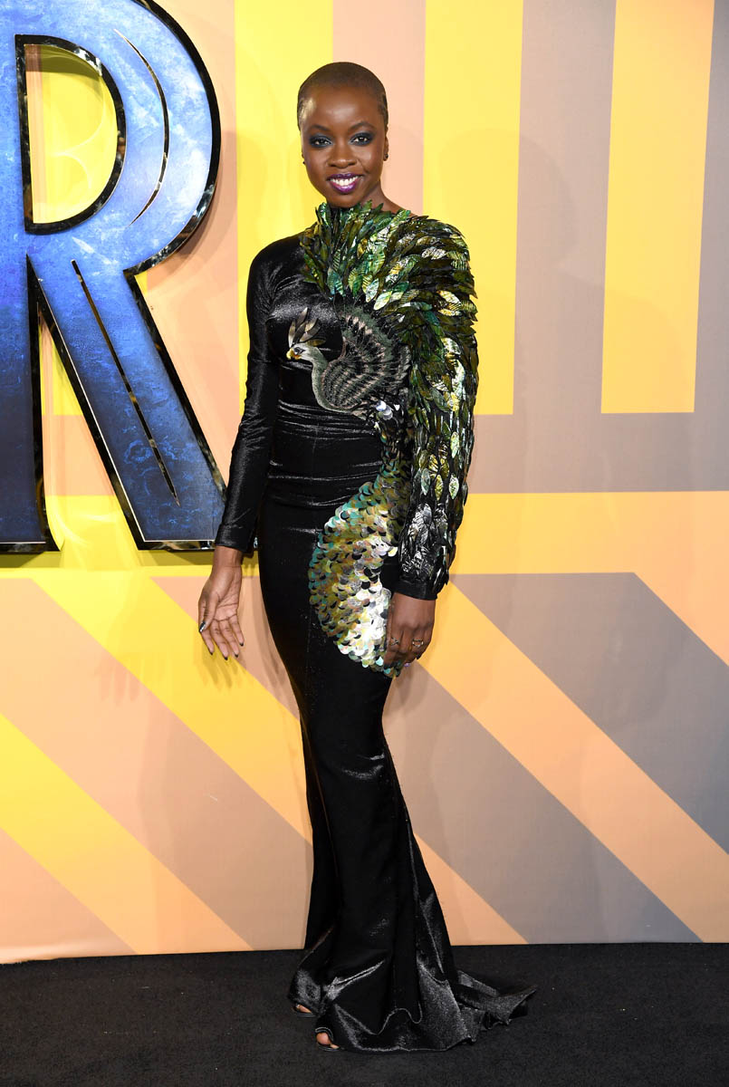 For now then…let’s enjoy the photos. And the style porn. The Black Panther European premiere was last night in London. Can we start with Danai Gurira? Because this dress, holy sh-t motherf-cker (Quincy Jones’s favourite word). It’s Jean Louis Sabaji. And it’s a design that feels like it’s taking place in real time. Doesn’t it look like those feathers are spreading across her body right now? As you’re looking at it? Kind of like the way Mystique’s body transforms in X-Men?
