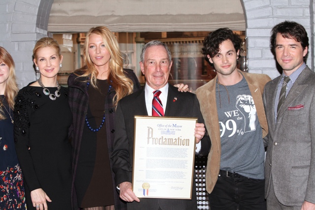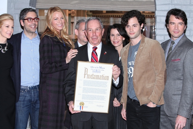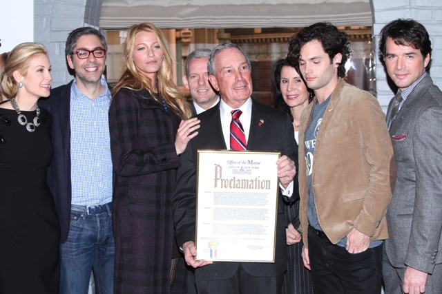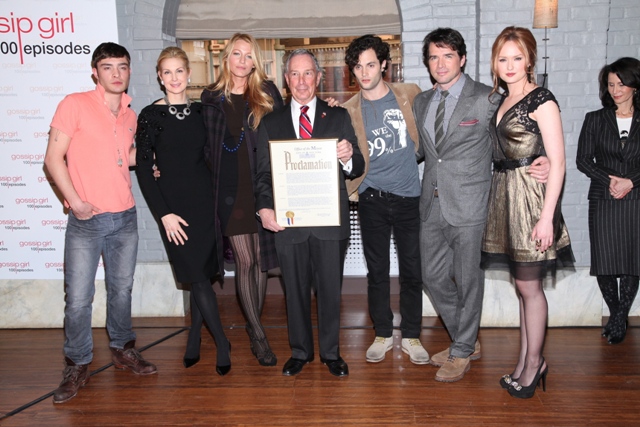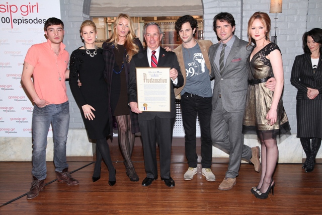 Michael Bloomberg bestowed a mayoral proclamation in celebration of the 100th episode of Gossip Girl today in New York. Without Blair.
