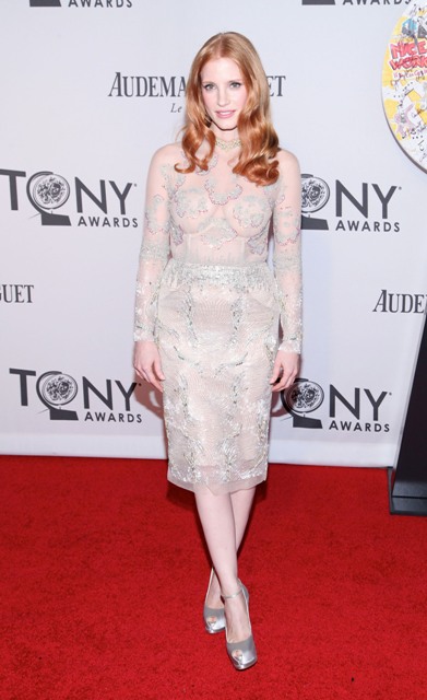 God she is interesting. Not only does she never look the same in any film, she also never sounds the same from day to day. I can’t wait for you to see her in Lawless. Chastain is an extraordinary talent. Does it matter then that her styling isn’t as consistent as her acting? Of course not. But the reason we talk about it is because, when you make a choice like this, you get the sense that it matters, a little, to her. And if that’s the case, they need to do better.