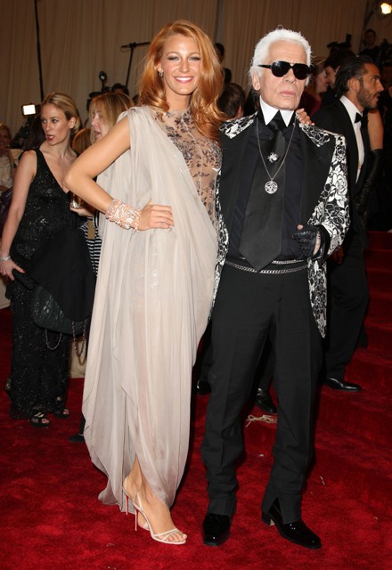 Karl is never really smiley to begin with, no. But his expression here, as Blake drapes herself all over him like he’s Ben Affleck, it’s extra, extra crusty, non? Surrounded by so many of the “right” girls, as Karl would say, and rather judgily, at this event, I wonder how he’s measuring Blake up to them. Photo Assumption says he might not be into it anymore.