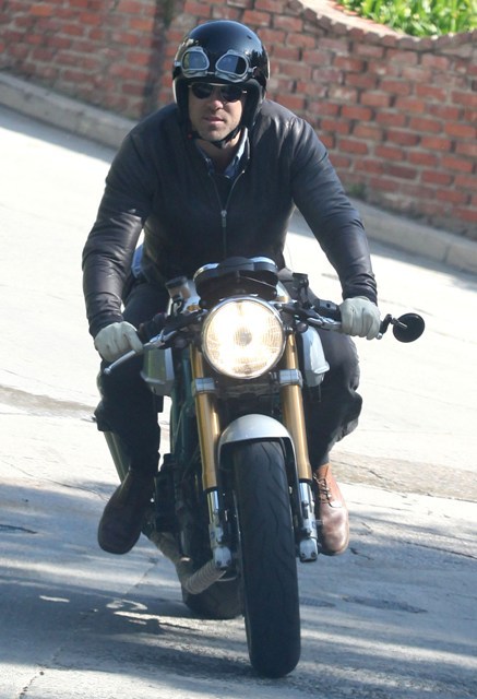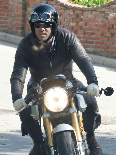 Attached- Ryan Reynolds on his bike in Los Angeles yesterday.