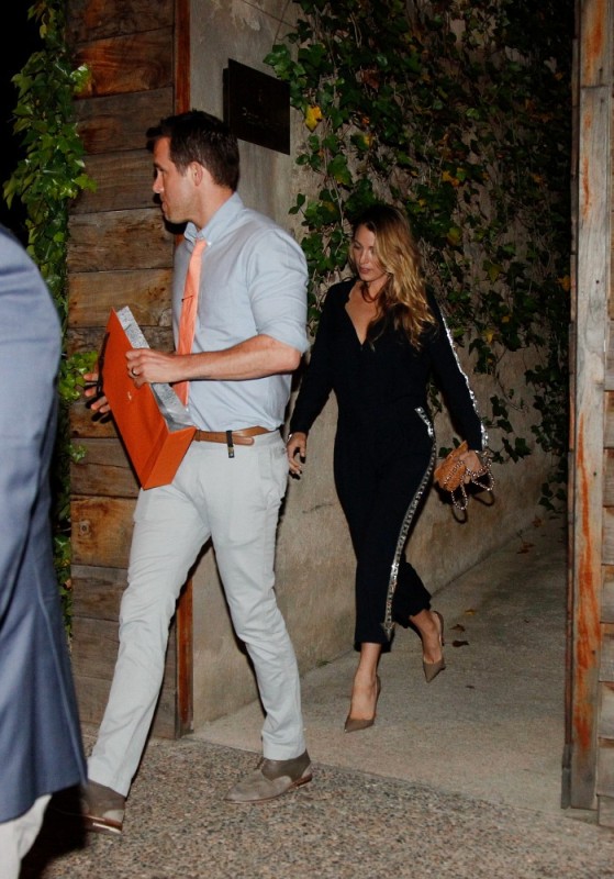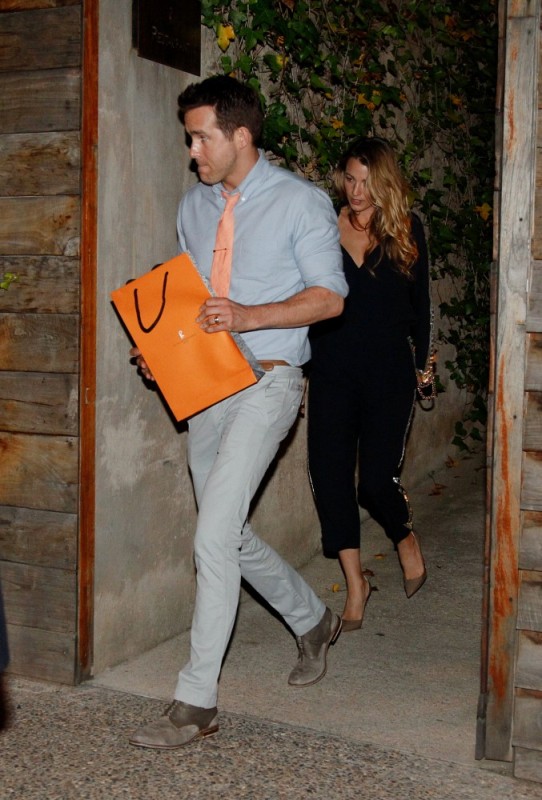 Ryan Reynolds and Blake Lively have spent the last couple of months in Europe as he’s been shooting a movie. He is now currently promoting The Croods. They were in Barcelona yesterday. Blake wasn’t at the premiere, but met up with her husband afterwards for dinner. She wore a black jumpsuit with a sparkly side-trim and puke coloured shoes similar to Kristen Wiig’s last week. In Blake’s case they’re much less offensive since they dress down the outfit for the occasion. It’s not like she was on a carpet.