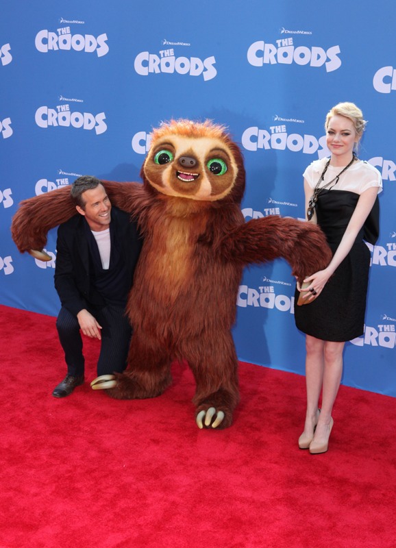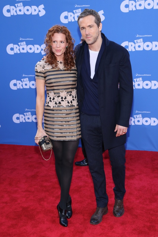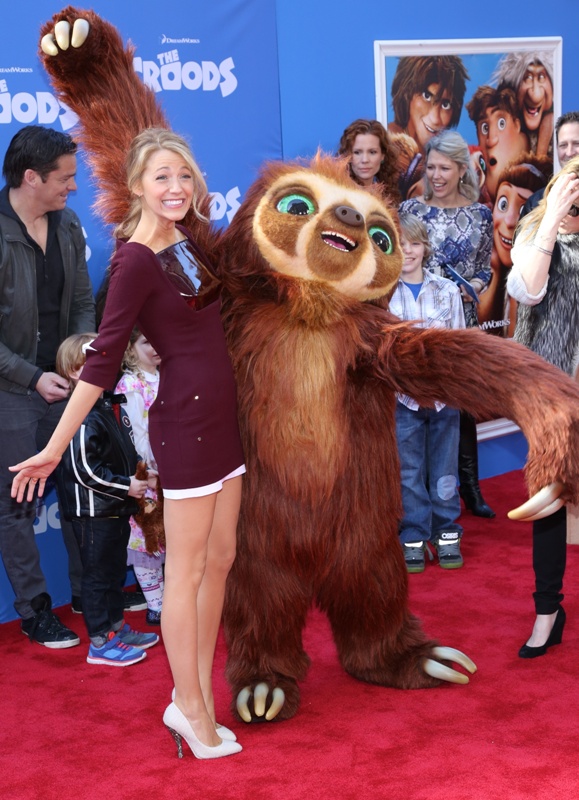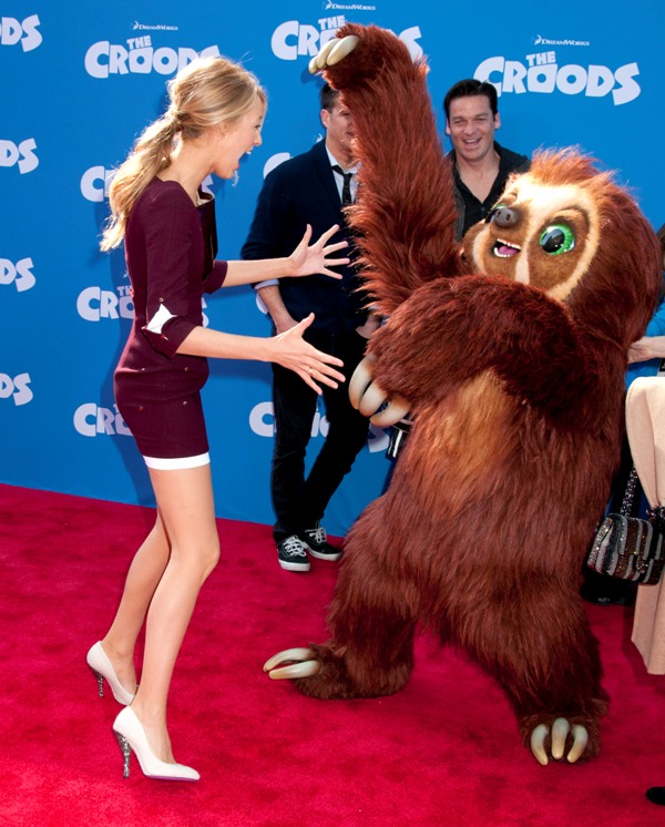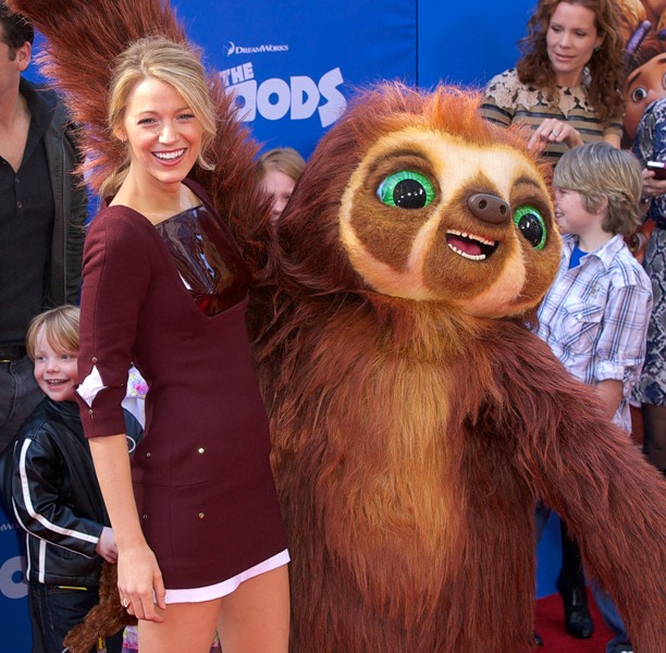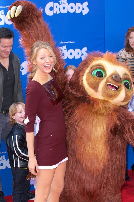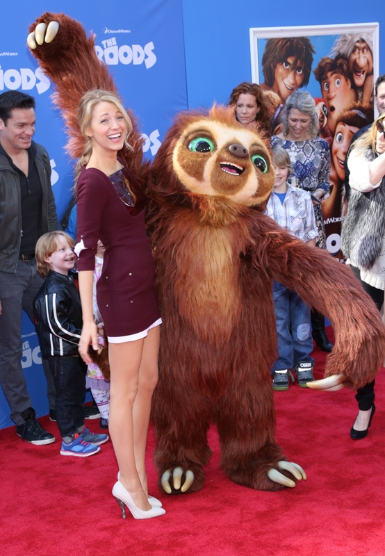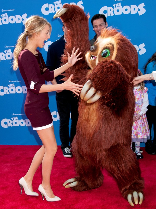 So here’s Blake Lively at the NY premiere of The Croods yesterday styled appropriately now as a Married Woman. As noted last week, since she’s Mrs Reynolds now, it’s never tits and legs at the same time. And she wears her hair all mature and un-single too. No more messy waves and sexy bed-head? Of course not. She bakes, spending more time in the kitchen than front row at fashion shows.