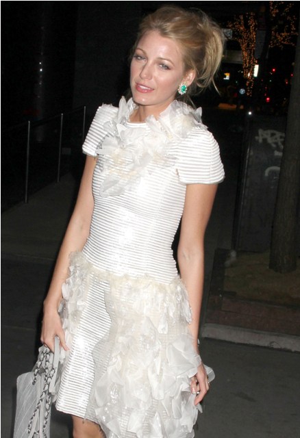 There was a Chanel dinner or something last night. Blake Lively was the guest of honour. She wore an amazing white cocktail dress with amazing Louboutins. Does it make you crazy the way, um, the pronunciation of “Louboutin” has essentially been mangled? LEW-BOO-TAWN.