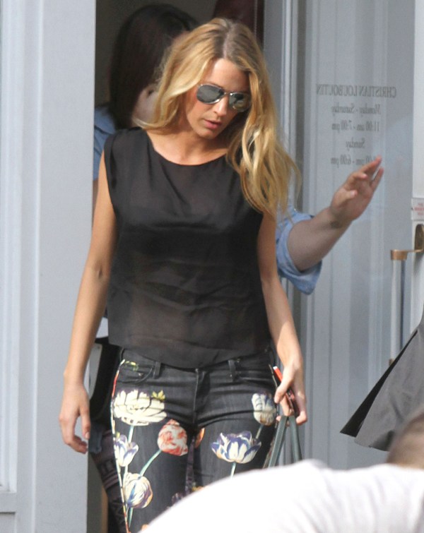 After her underwhelming appearance at the MET Gala on Monday night -- click here for a refresher -- Blake Lively was out in New York for a photo shoot yesterday in several different outfits. Then she went shopping in floral print jeans. Somewhere in there she was also seen in a GORGEOUS pink leather jacket. Will you be bombing Sasha’s inbox to find it?