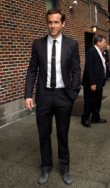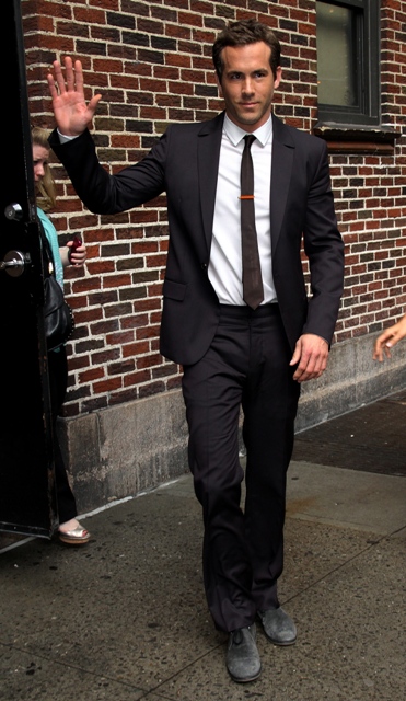 Ryan Reynolds hit up Letterman last night. Looking good. And trim. And not wearing a cardigan – approve. I was complaining about this at the MTV Movie Awards. Also, why are men allowed to get away with beat up shoes and nice clothes? Or is that just famous men?