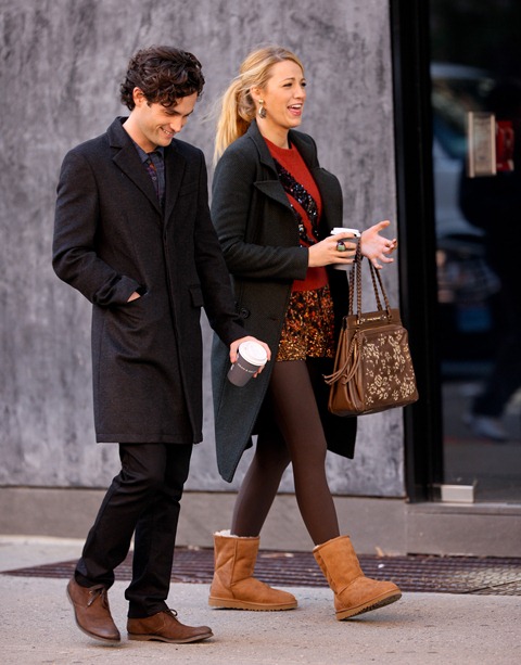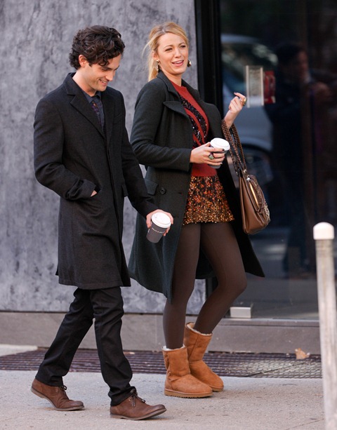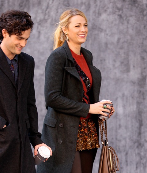 Blake Lively is back in New York after spending Ryan Reynolds’s birthday weekend with him in Boston. Here she is working on Gossip Girl with ex-boyfriend Penn Badgley. Blake moved beyond Penn. She waited patiently, killing time with Leonardo DiCaprio, until Ryan Reynolds, the main target, became available and finally agreed to check her out. Penn doesn’t appear to hold this against her. Maybe he’s a big fan of her big baller game too.