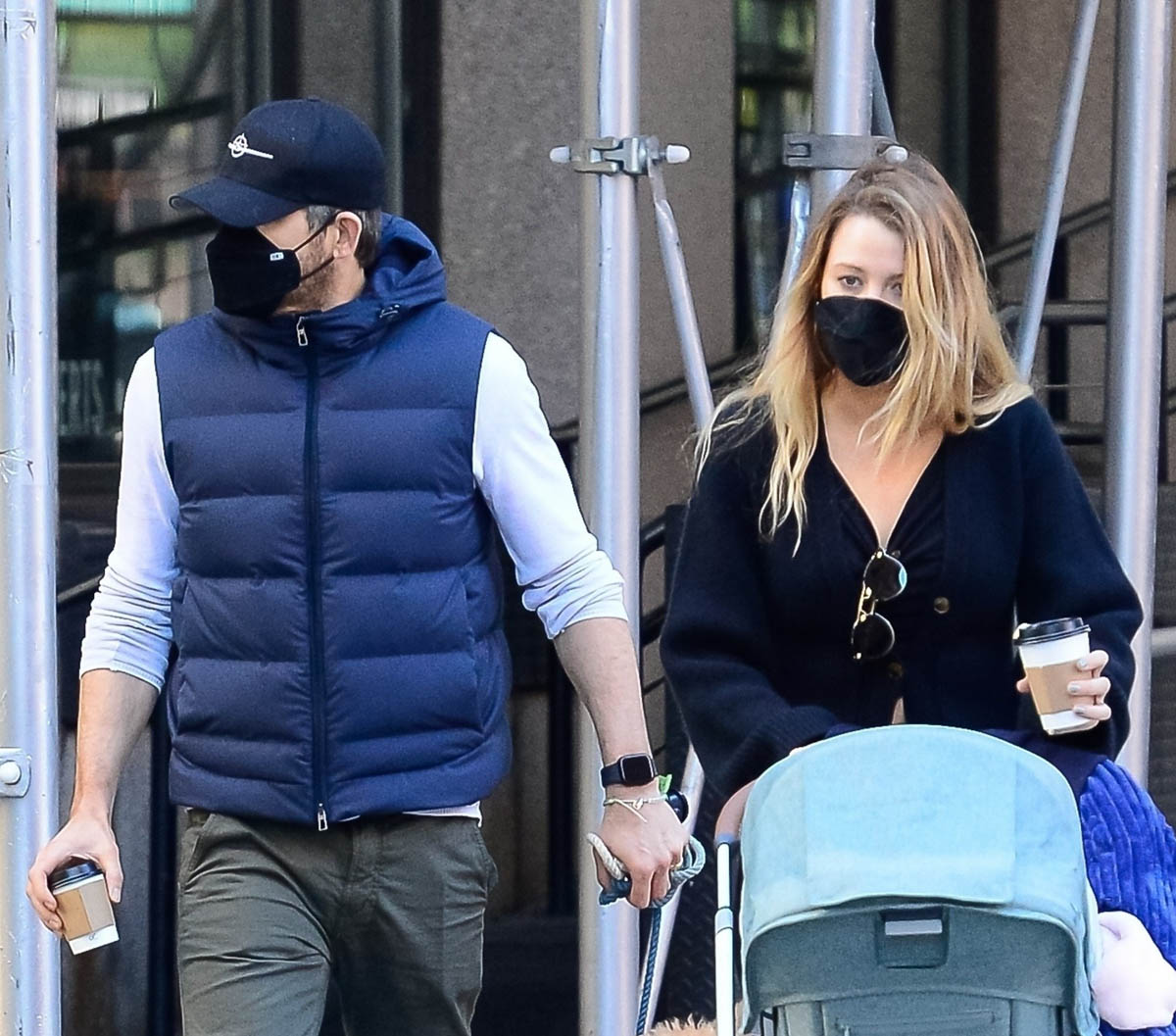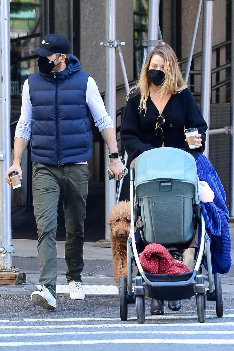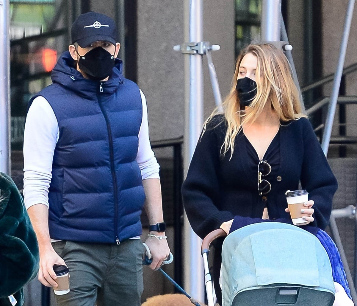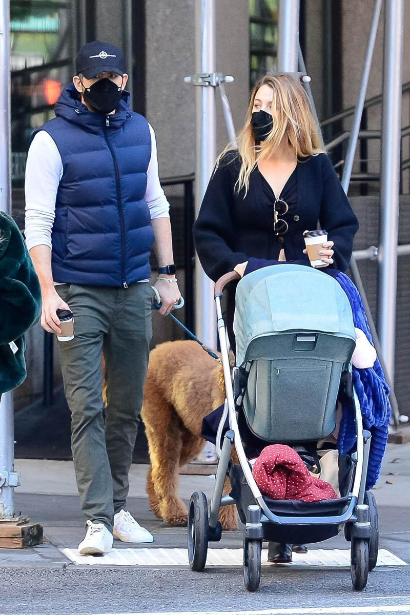 Also attached – photos from earlier on Monday when Blake was out with Ryan, their dog, and their baby for a coffee run.