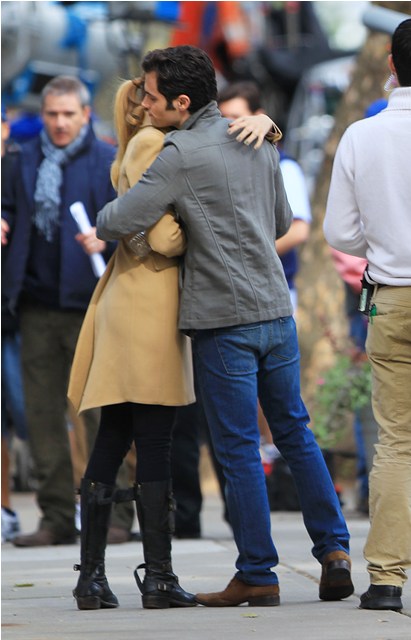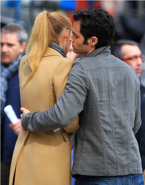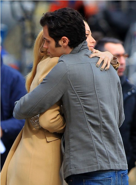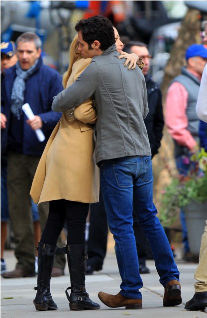 Attached – Blake and Penn on the Gossip Girl set last week hugging awkwardly like just friends.