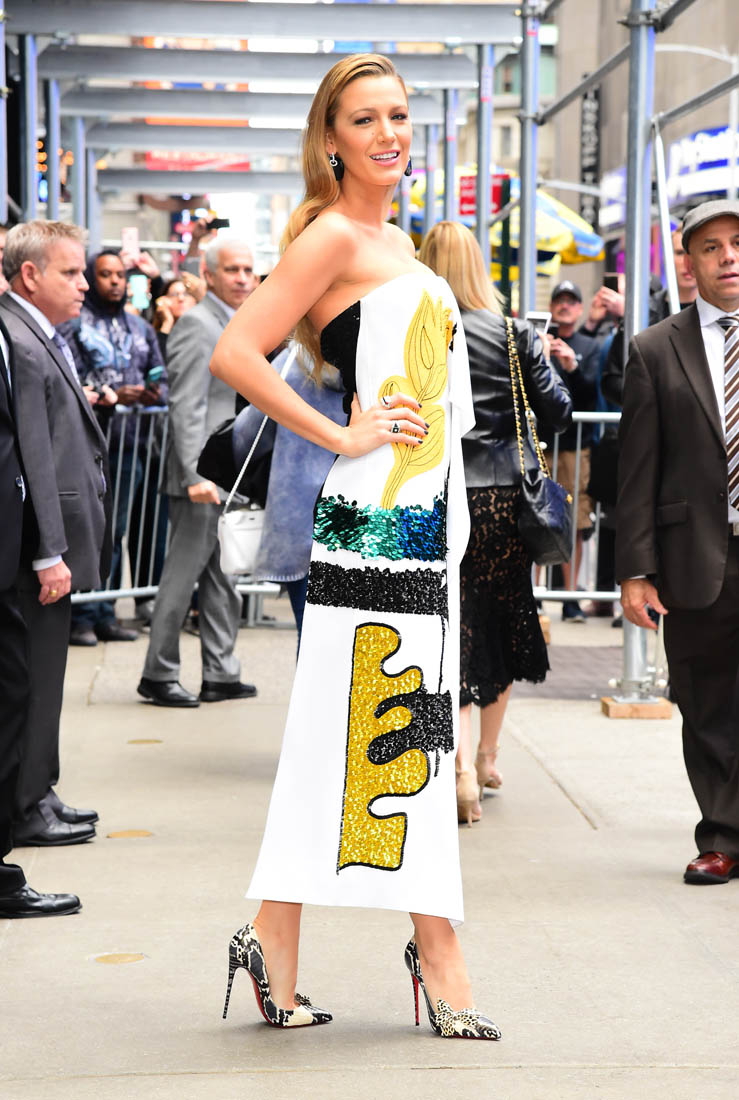 Blake’s been known to make multiple wardrobe changes during a day of press. So we’ll likely see a lot more of her fashion showcase in the next few days. You know, because fashion isn’t a valuable business asset for actresses, right?
