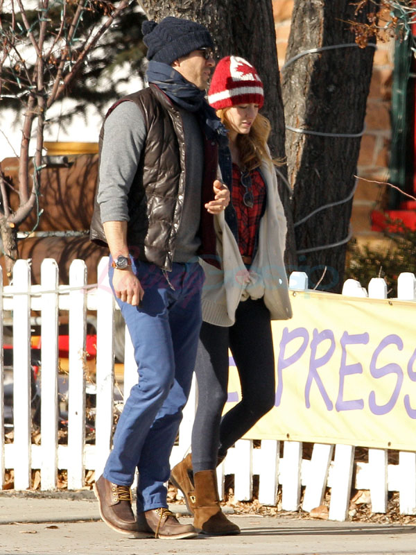 Blake Lively and Ryan Reynolds were photographed in Aspen yesterday walking to a local comedy club. There’s a maple leaf on her hat. It’s a super cute hat.