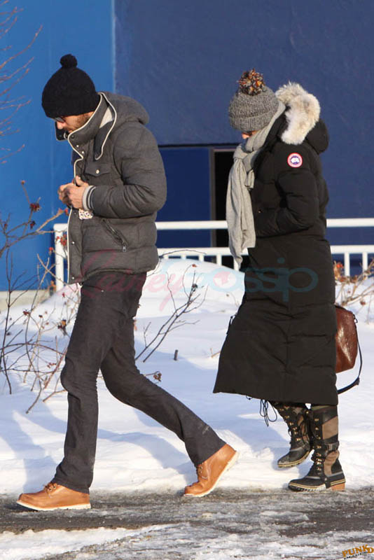 Far away from NY Fashion Week and award season, we find newlyweds Blake Lively and Reynolds in Sudbury, Ontario, a few hours’ drive north of Toronto where it’s currently -12˚C with the windchill. That’s 10˚F for you Americans. The other day it was -20˚C and -4˚F! Reynolds is there shooting Atom Egoyan’s Queen Of The Night. They brought their dogs with them too. As a dog owner, if you travel with the dogs, you expect to stick around. Mrs Reynolds will not be flying out every two or three days back to New York.