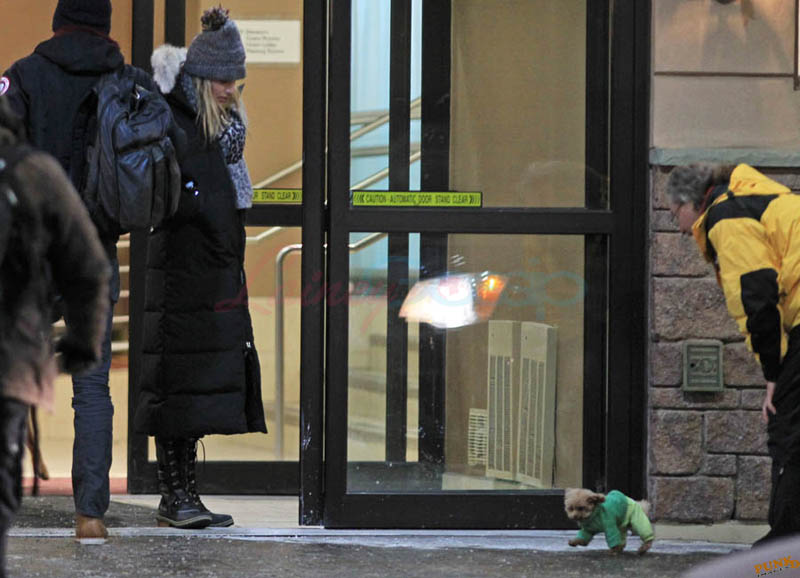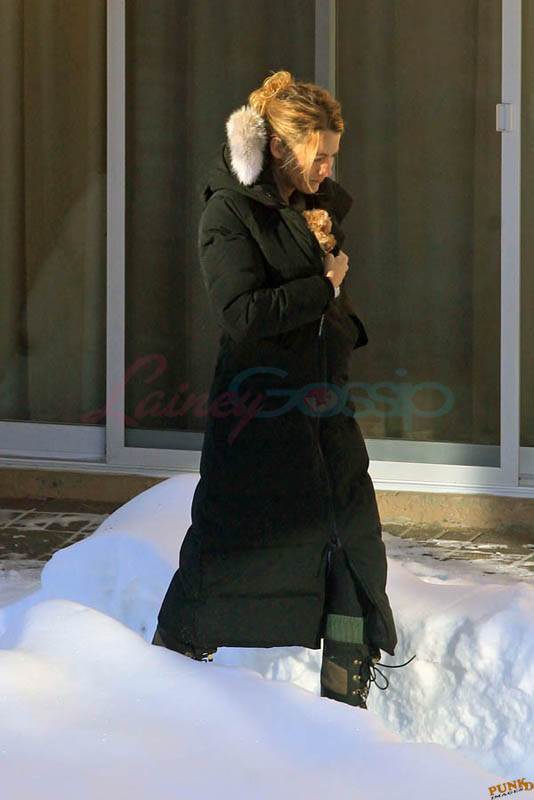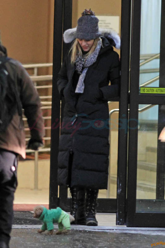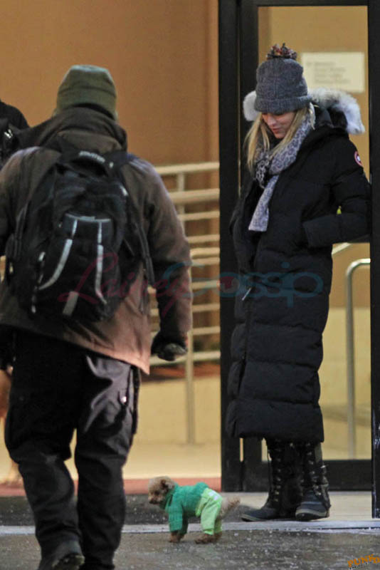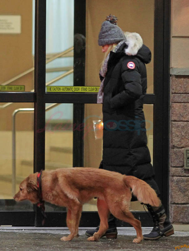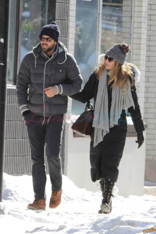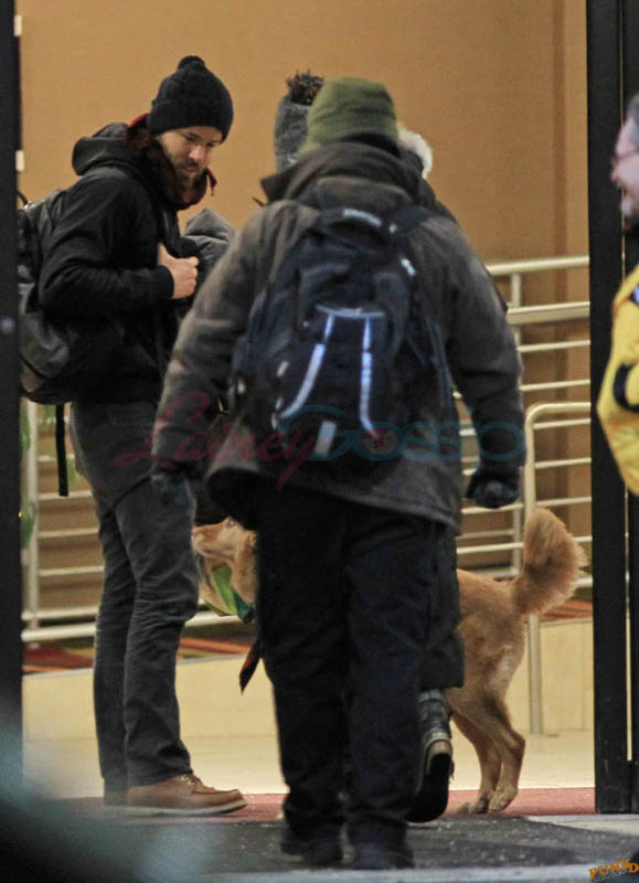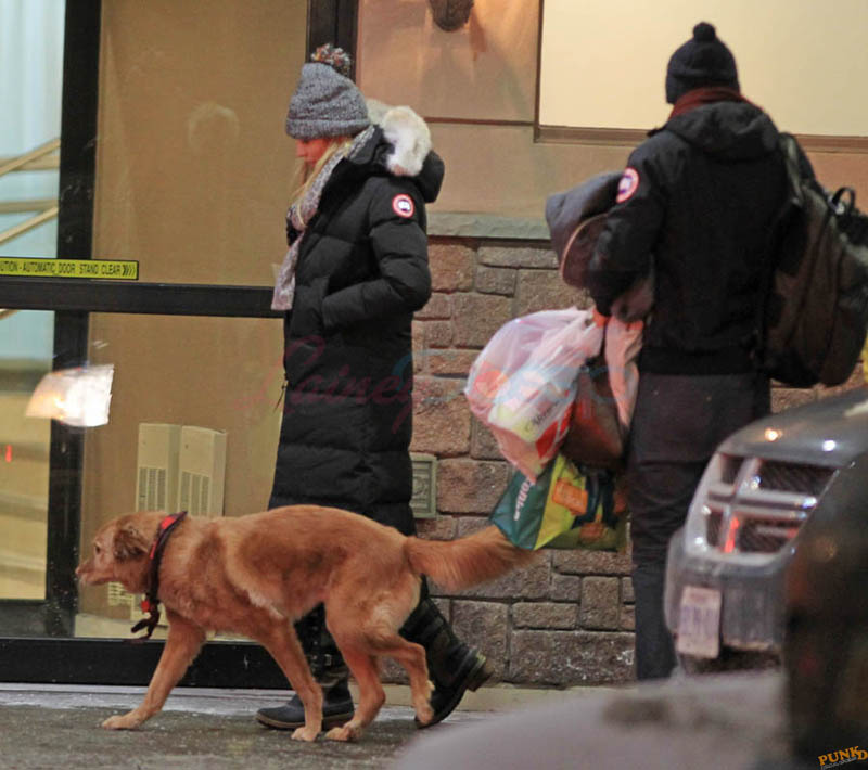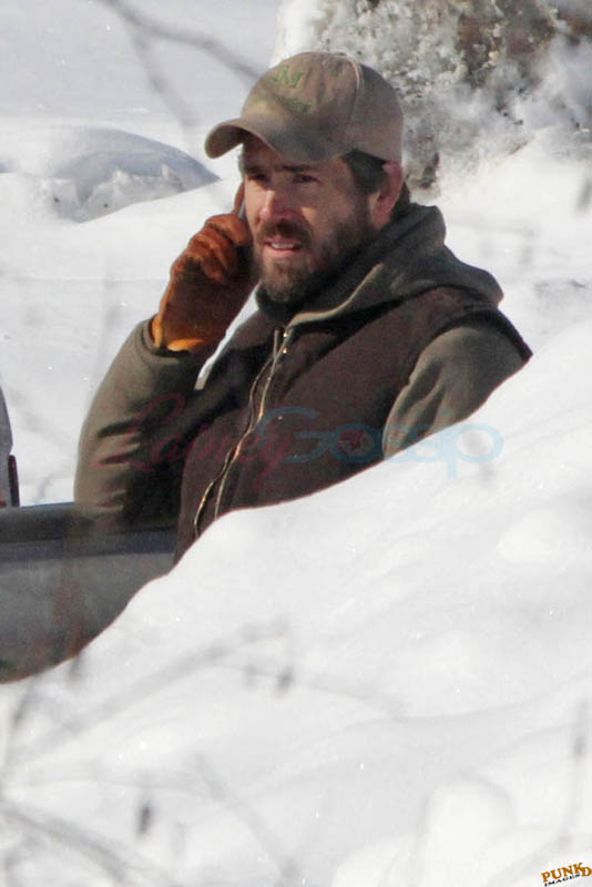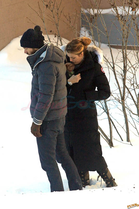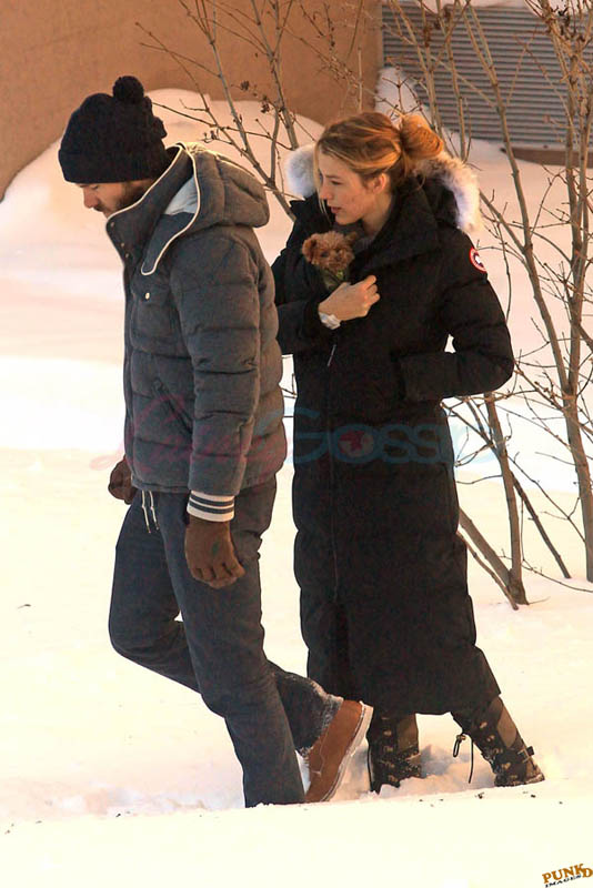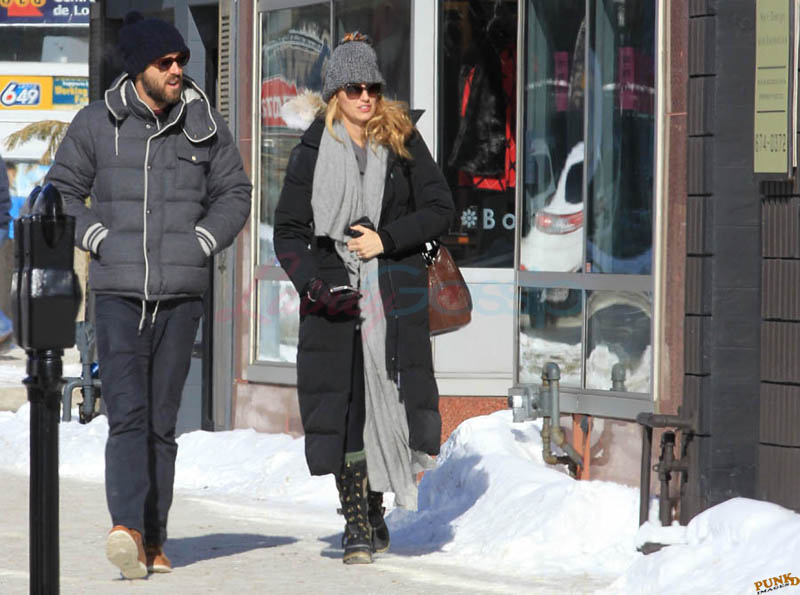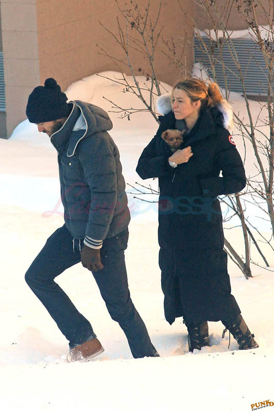 Far away from NY Fashion Week and award season, we find newlyweds Blake Lively and Reynolds in Sudbury, Ontario, a few hours’ drive north of Toronto where it’s currently -12˚C with the windchill. That’s 10˚F for you Americans. The other day it was -20˚C and -4˚F! Reynolds is there shooting Atom Egoyan’s Queen Of The Night. They brought their dogs with them too. As a dog owner, if you travel with the dogs, you expect to stick around. Mrs Reynolds will not be flying out every two or three days back to New York.