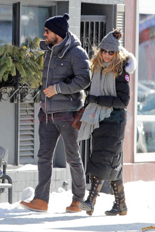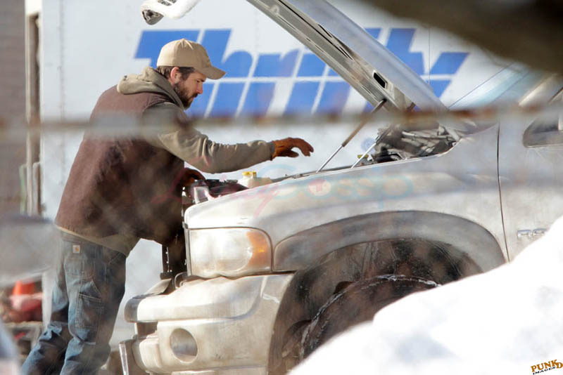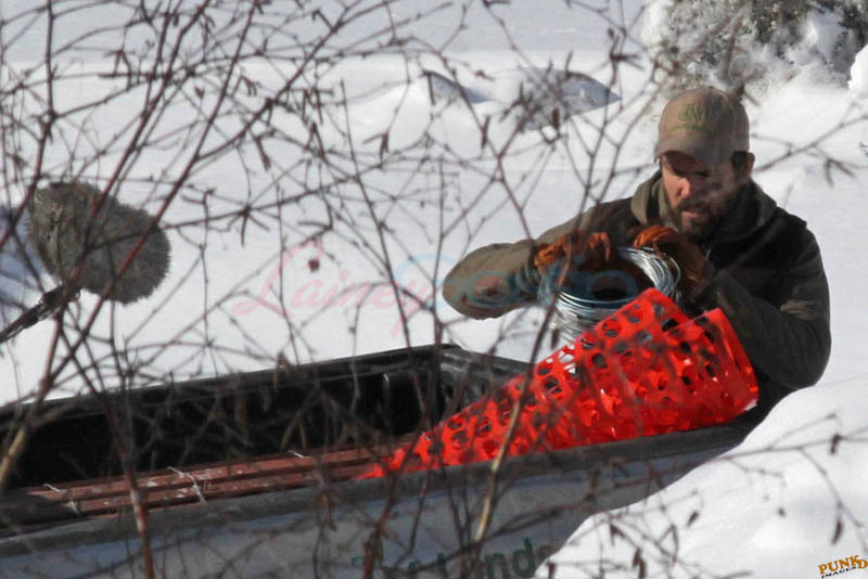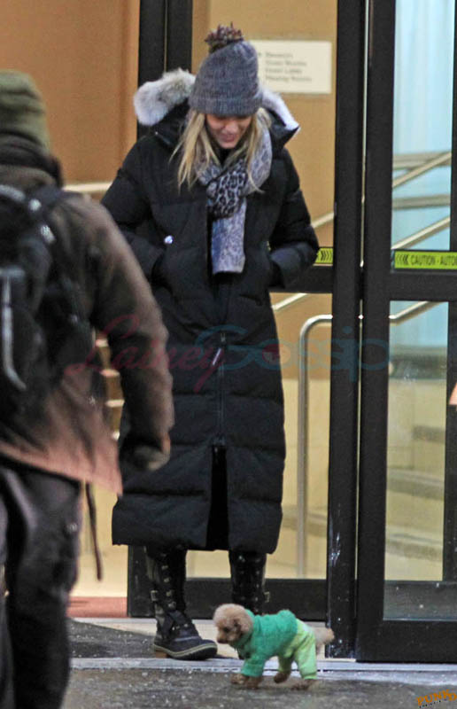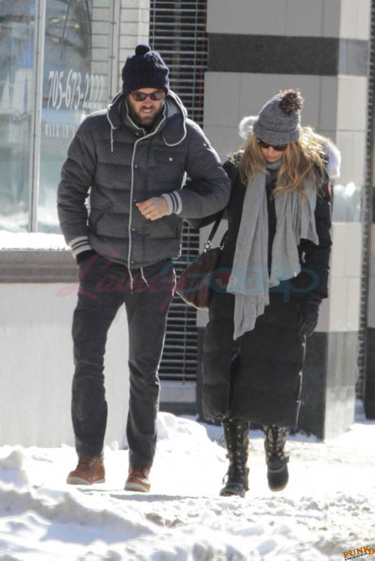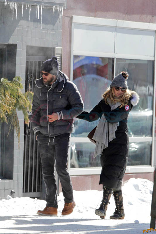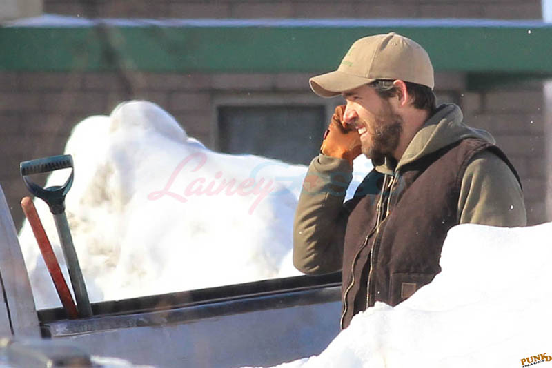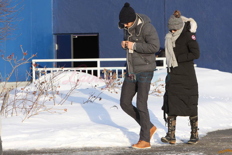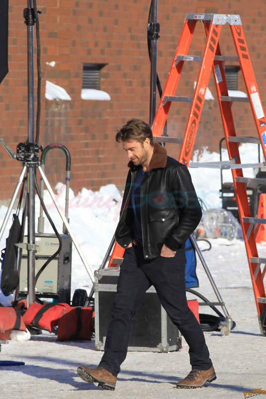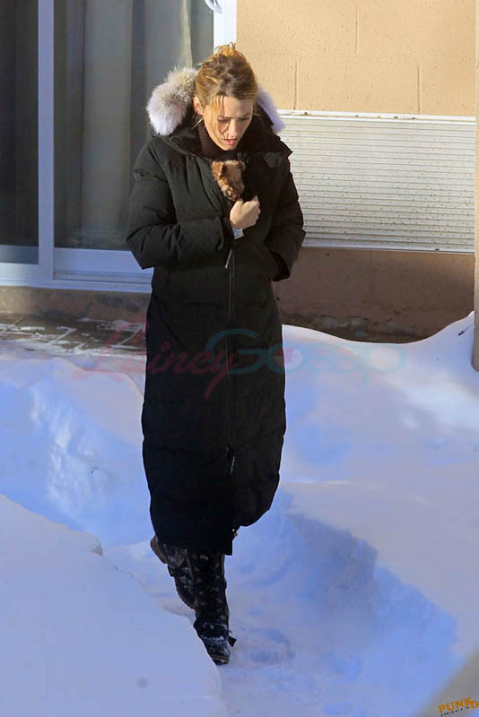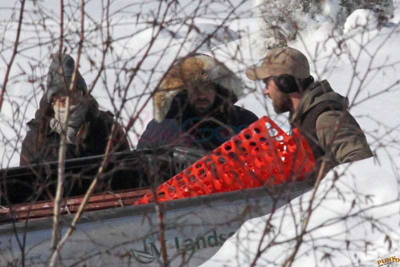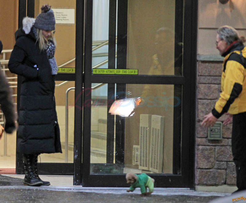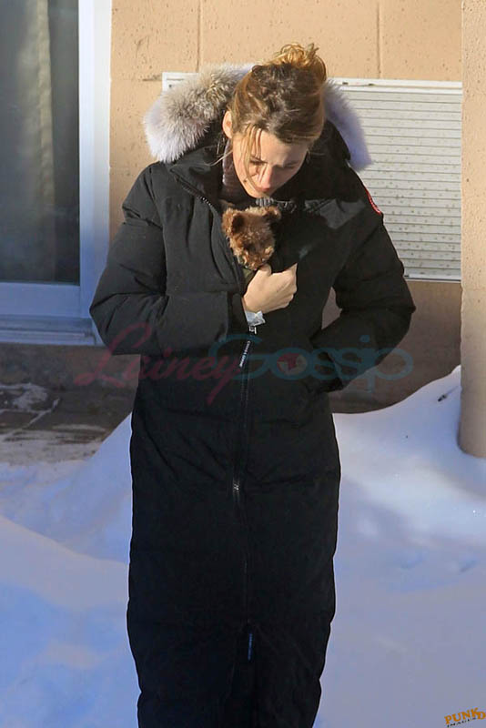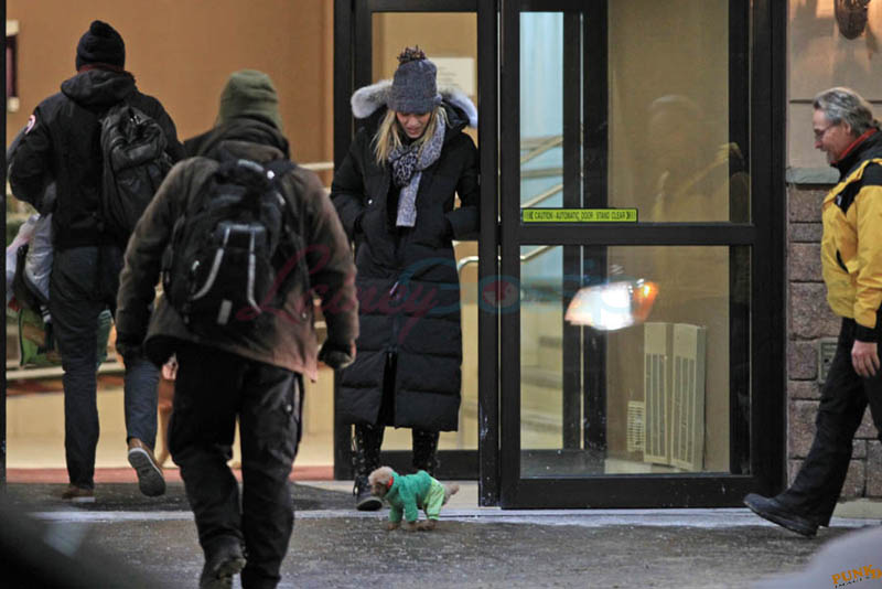 Far away from NY Fashion Week and award season, we find newlyweds Blake Lively and Reynolds in Sudbury, Ontario, a few hours’ drive north of Toronto where it’s currently -12˚C with the windchill. That’s 10˚F for you Americans. The other day it was -20˚C and -4˚F! Reynolds is there shooting Atom Egoyan’s Queen Of The Night. They brought their dogs with them too. As a dog owner, if you travel with the dogs, you expect to stick around. Mrs Reynolds will not be flying out every two or three days back to New York.