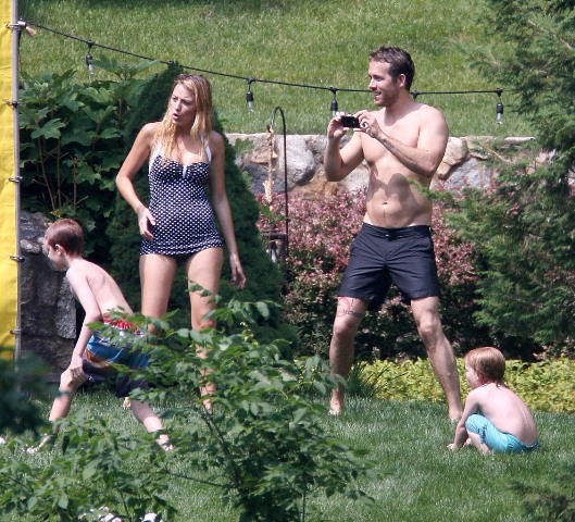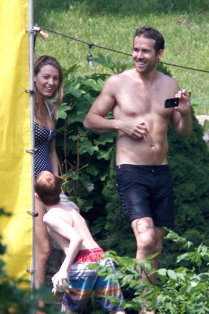 But look, Blake Lively is in a bathing suit. Let’s shift our focus to celebrity anthropology now. Here are Blake and Ryan Reynolds enjoying Independence Day last week with her family. These photos were released on Friday. Savages was also released on Friday.