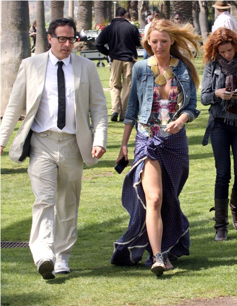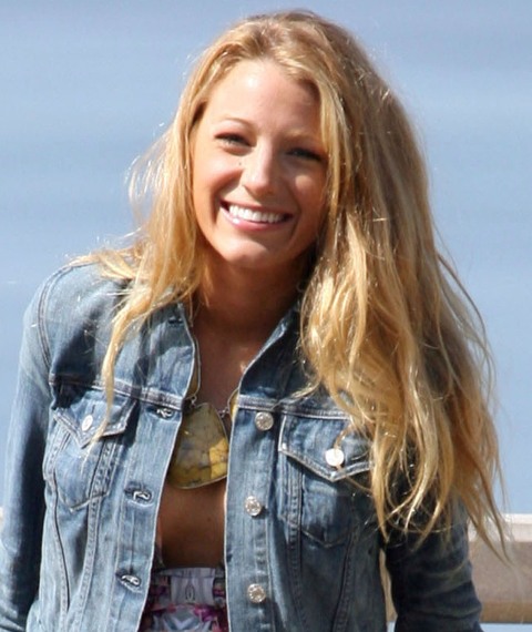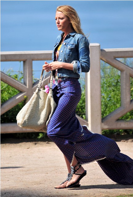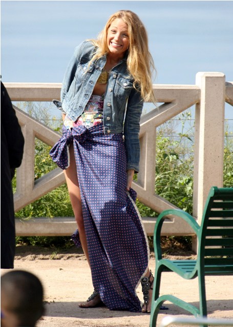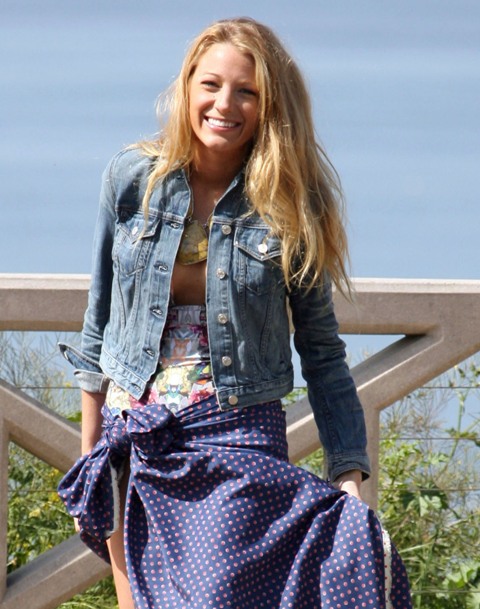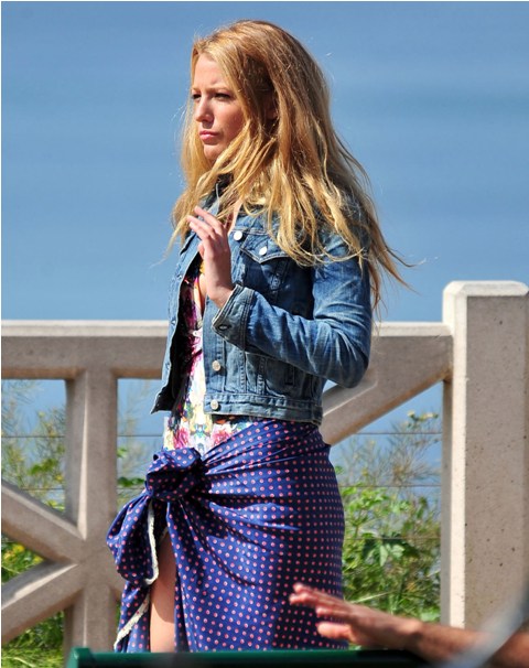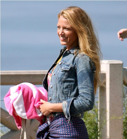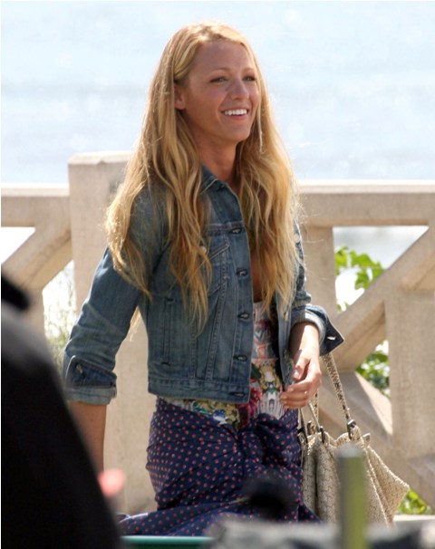 Check out Blake Lively in Santa Monica yesterday shooting scenes for Gossip Girl…and you know, it could be argued, Lively’s Serena is definitely more West Coast than Upper East Side. She looks right at home. Really good. Easily, effortlessly California good. This reminds me, I need a new denim jacket because I left mine in a cab last year and haven’t found the right shade for another one since. Also, some cheap versions flare at the waist. This makes me crazy. You see how hers just sits nice and flat?